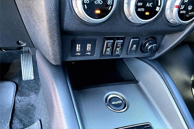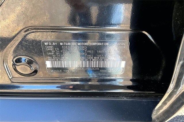 Mitsubishi Certified Pre-Owned Certified, 4WD, 4-Wheel Disc Brakes, 6.026 Axle Ratio, ABS brakes, Air Conditioning, Auto High-beam Headlights, Auto-dimming Rear-View mirror, Automatic temperature control, Brake assist, Bumpers: body-color, Delay-off headlights, Driver door bin, Driver vanity mirror, Dual front impact airbags, Dual front side impact airbags, Electronic Stability Control, Exterior Parking Camera Rear, Four wheel independent suspension, Front anti-roll bar, Front Bucket Seats, Front Center Armrest, Front reading lights, Fully automatic headlights, Heated door mirrors, Illuminated entry, Knee airbag, Low tire pressure warning, Occupant sensing airbag, Outside temperature display, Overhead airbag, Panic alarm, Passenger door bin, Passenger vanity mirror, Power door mirrors, Power steering, Power windows, Radio data system, Rain sensing wipers, Rear anti-roll bar, Rear seat center armrest, Rear window defroster, Rear window wiper, Remote keyless entry, Security system, Speed control, Speed-sensing steering, Split folding rear seat, Steering wheel mounted audio controls, Tachometer, Telescoping steering wheel, Tilt steering wheel, Traction control, Trip computer, and Variably intermittent wipers. 23/29 City/Highway MPG
