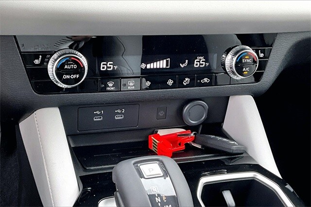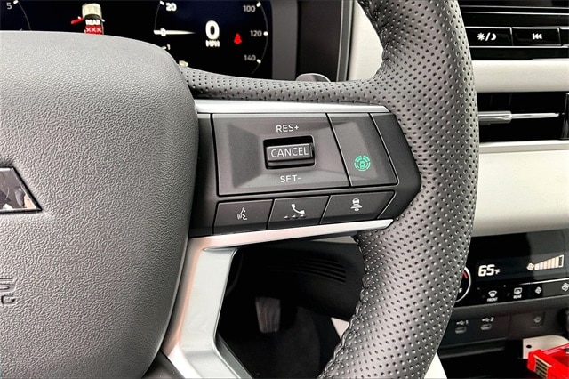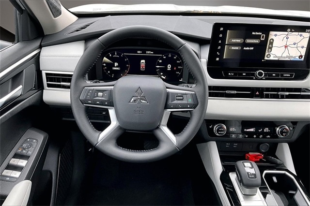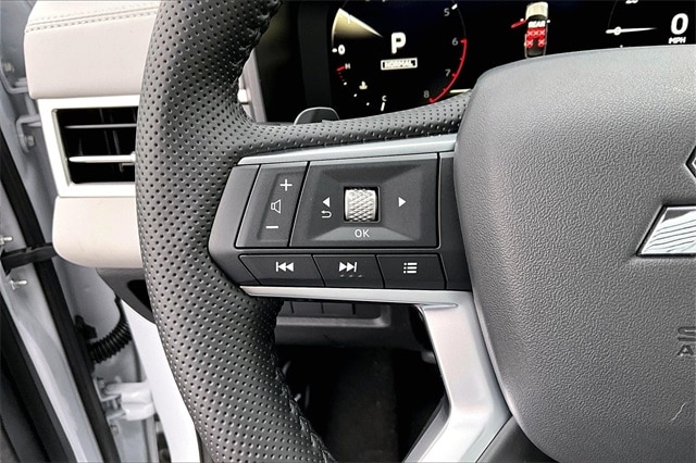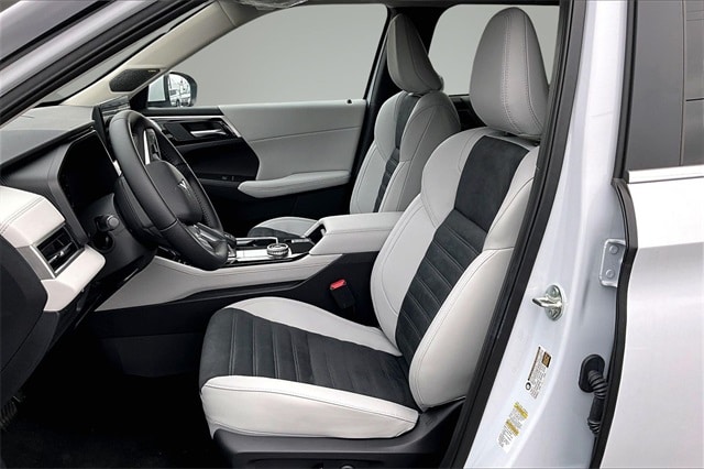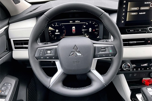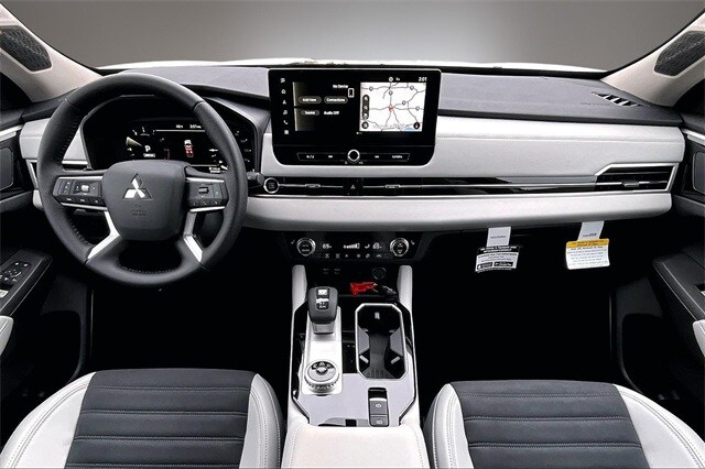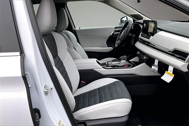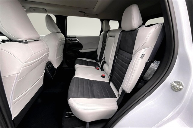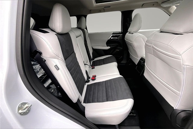 3rd row seats: split-bench, 4-Wheel Disc Brakes, 8 Speakers, ABS brakes, Air Conditioning, Alloy wheels, AM/FM radio: SiriusXM, Android Auto & Apple CarPlay, Auto High-beam Headlights, Auto-dimming Rear-View mirror, Automatic temperature control, Brake assist, Bumpers: body-color, Driver door bin, Driver vanity mirror, Dual front impact airbags, Dual front side impact airbags, Electronic Stability Control, Emergency communication system: Mitsubishi Connect w/ 24-month trial, Exterior Parking Camera Rear, Four wheel independent suspension, Front anti-roll bar, Front Bucket Seats, Front Center Armrest w/Storage, Front dual zone A/C, Front fog lights, Front reading lights, Fully automatic headlights, Garage door transmitter: HomeLink, Heated door mirrors, Heated Front Bucket Seats, Heated front seats, Illuminated entry, Knee airbag, Leather Shift Knob, Leather steering wheel, Low tire pressure warning, Navigation System, Occupant sensing airbag, Outside temperature display, Overhead airbag, Overhead console, Panic alarm, Passenger door bin, Passenger vanity mirror, Power door mirrors, Power driver seat, Power Liftgate, Power steering, Power windows, Radio data system, Radio: AM/FM 12.3" Navigation w/Smartphone-Link, Rain sensing wipers, Rear anti-roll bar, Rear seat center armrest, Rear side impact airbag, Rear window defroster, Rear window wiper, Reclining 3rd row seat, Remote keyless entry, Security system, Speed control, Speed-Sensitive Wipers, Split folding rear seat, Spoiler, Steering wheel mounted audio controls, Synthetic Leather Seating Surfaces, Tachometer, Telescoping steering wheel, Tilt steering wheel, Traction control, Trip computer, Turn signal indicator mirrors, Variably intermittent wipers, and Wheels: 20" Two-Tone Alloy. 24/31 City/Highway MPG