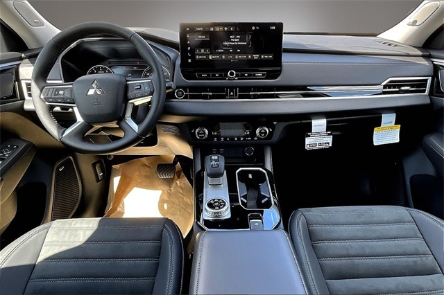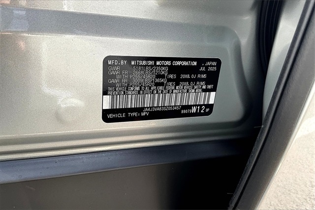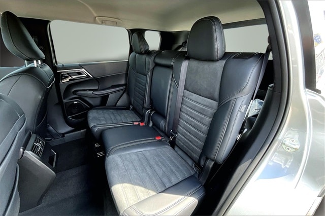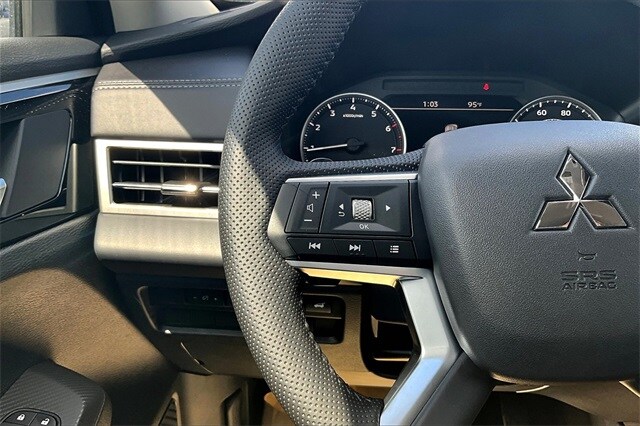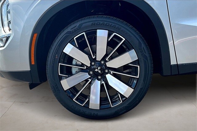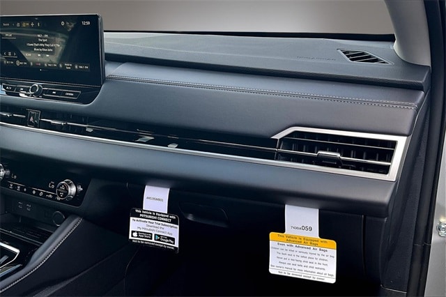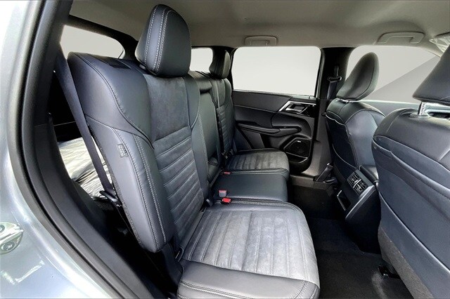 3rd row seats: split-bench, 4-Wheel Disc Brakes, 8 Speakers, ABS brakes, Air Conditioning, Alloy wheels, AM/FM radio: SiriusXM, Android Auto & Apple CarPlay, Auto High-beam Headlights, Auto-dimming Rear-View mirror, Automatic temperature control, Brake assist, Bumpers: body-color, Driver door bin, Driver vanity mirror, Dual front impact airbags, Dual front side impact airbags, Electronic Stability Control, Emergency communication system: Mitsubishi Connect w/ 24-month trial, Exterior Parking Camera Rear, Four wheel independent suspension, Front anti-roll bar, Front Bucket Seats, Front Center Armrest w/Storage, Front dual zone A/C, Front fog lights, Front reading lights, Fully automatic headlights, Garage door transmitter: HomeLink, Heated door mirrors, Heated Front Bucket Seats, Heated front seats, Illuminated entry, Knee airbag, Leather Shift Knob, Leather steering wheel, Low tire pressure warning, Navigation System, Occupant sensing airbag, Outside temperature display, Overhead airbag, Overhead console, Panic alarm, Passenger door bin, Passenger vanity mirror, Power door mirrors, Power driver seat, Power Liftgate, Power steering, Power windows, Radio data system, Radio: AM/FM 12.3" Navigation w/Smartphone-Link, Rain sensing wipers, Rear anti-roll bar, Rear seat center armrest, Rear side impact airbag, Rear window defroster, Rear window wiper, Reclining 3rd row seat, Remote keyless entry, Security system, Speed control, Speed-Sensitive Wipers, Split folding rear seat, Spoiler, Steering wheel mounted audio controls, Synthetic Leather Seating Surfaces, Tachometer, Telescoping steering wheel, Tilt steering wheel, Traction control, Trip computer, Turn signal indicator mirrors, Variably intermittent wipers, and Wheels: 20" Two-Tone Alloy. 24/31 City/Highway MPG