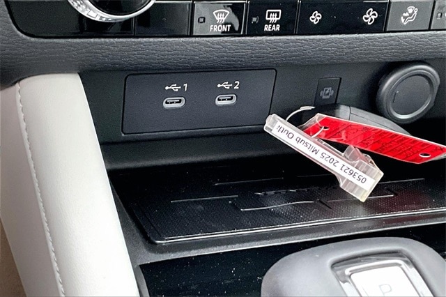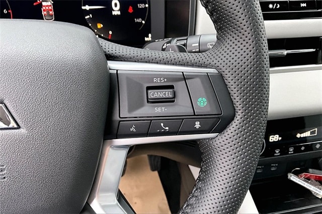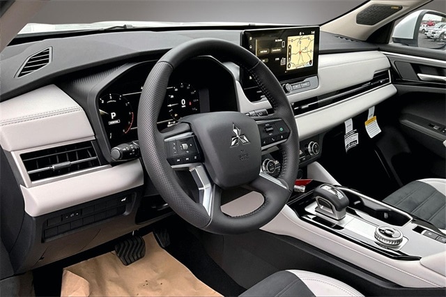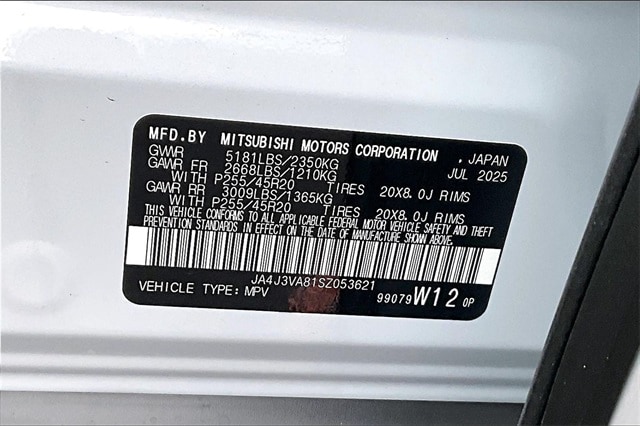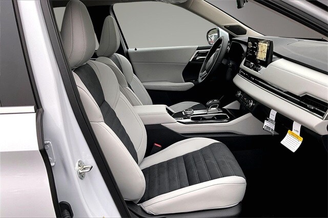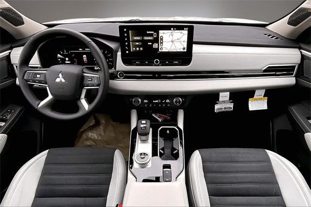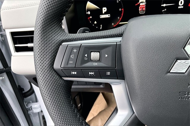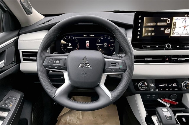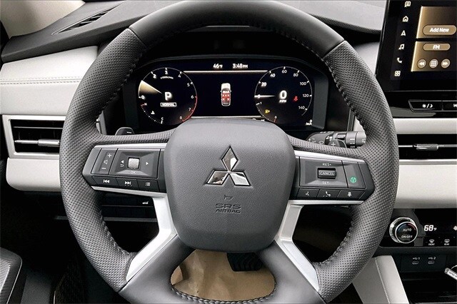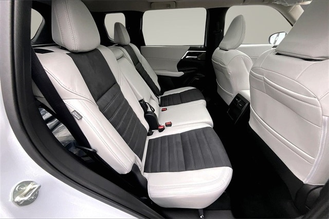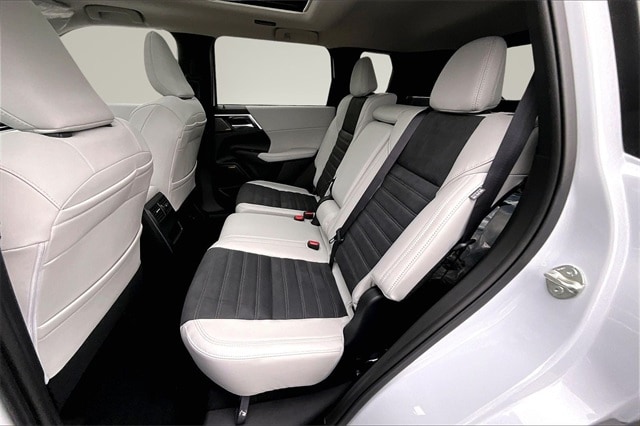3rd row seats: split-bench, 4-Wheel Disc Brakes, 8 Speakers, ABS brakes, Air Conditioning, Alloy wheels, AM/FM radio: SiriusXM, Android Auto & Apple CarPlay, Auto High-beam Headlights, Auto-dimming Rear-View mirror, Automatic temperature control, Brake assist, Bumpers: body-color, Driver door bin, Driver vanity mirror, Dual front impact airbags, Dual front side impact airbags, Electronic Stability Control, Emergency communication system: Mitsubishi Connect w/ 24-month trial, Exterior Parking Camera Rear, Four wheel independent suspension, Front anti-roll bar, Front Bucket Seats, Front Center Armrest w/Storage, Front dual zone A/C, Front fog lights, Front reading lights, Fully automatic headlights, Garage door transmitter: HomeLink, Heated door mirrors, Heated Front Bucket Seats, Heated front seats, Illuminated entry, Knee airbag, Leather Shift Knob, Leather steering wheel, Low tire pressure warning, Navigation System, Occupant sensing airbag, Outside temperature display, Overhead airbag, Overhead console, Panic alarm, Passenger door bin, Passenger vanity mirror, Power door mirrors, Power driver seat, Power Liftgate, Power steering, Power windows, Radio data system, Radio: AM/FM 12.3" Navigation w/Smartphone-Link, Rain sensing wipers, Rear anti-roll bar, Rear seat center armrest, Rear side impact airbag, Rear window defroster, Rear window wiper, Reclining 3rd row seat, Remote keyless entry, Security system, Speed control, Speed-Sensitive Wipers, Split folding rear seat, Spoiler, Steering wheel mounted audio controls, Synthetic Leather Seating Surfaces, Tachometer, Telescoping steering wheel, Tilt steering wheel, Traction control, Trip computer, Turn signal indicator mirrors, Variably intermittent wipers, and Wheels: 20" Two-Tone Alloy. 24/31 City/Highway MPG
