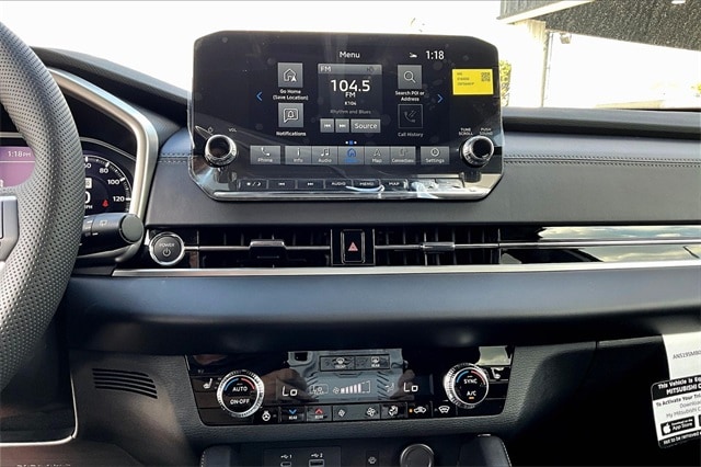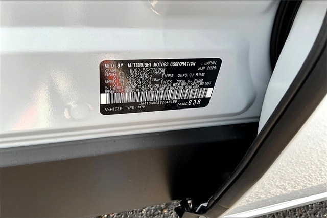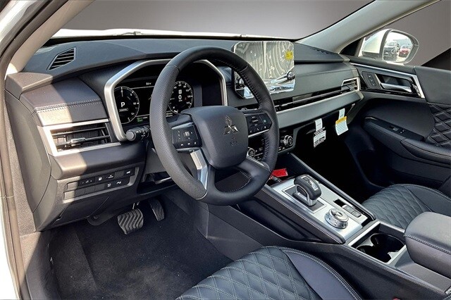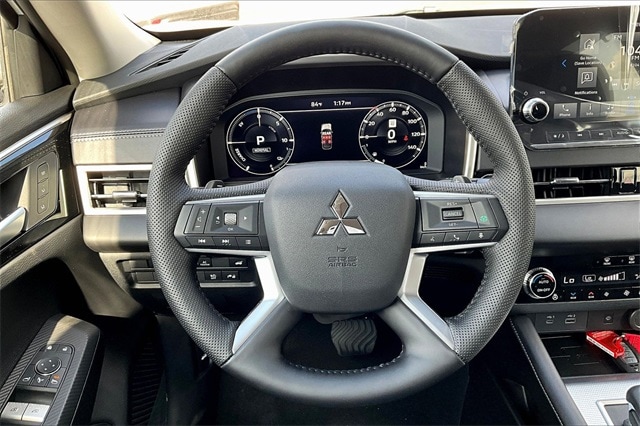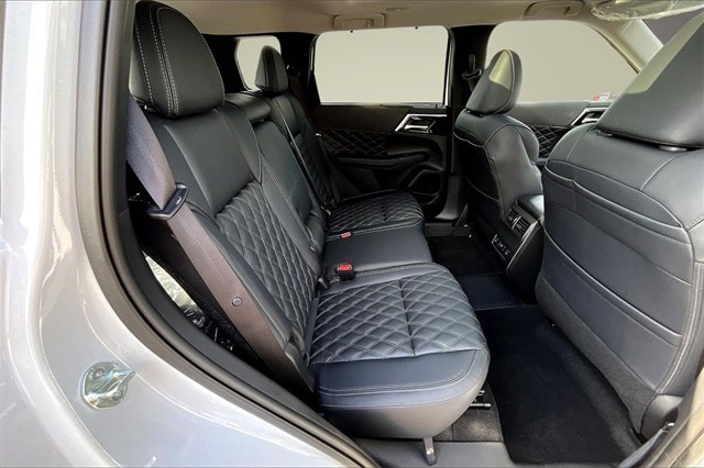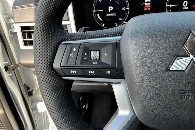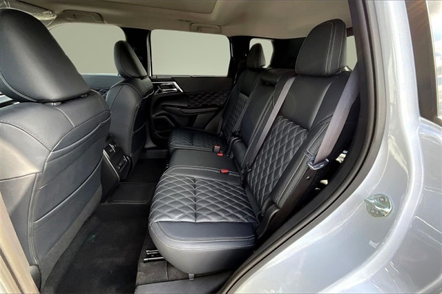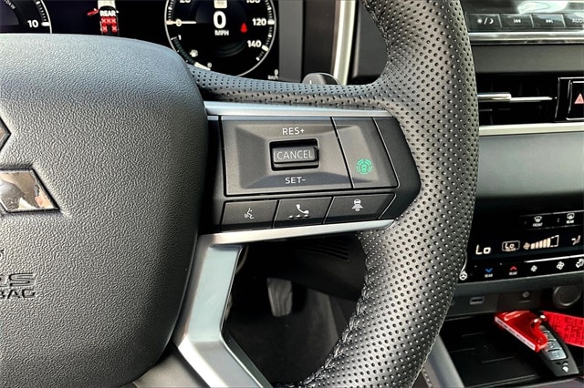 2.4L 4-Cylinder DI DOHC, 3rd row seats: split-bench, 4-Wheel Disc Brakes, ABS brakes, Air Conditioning, Alloy wheels, AM/FM radio: SiriusXM, Android Auto & Apple CarPlay, Auto High-beam Headlights, Auto-dimming Rear-View mirror, Automatic temperature control, Brake assist, Bumpers: body-color, Driver door bin, Driver vanity mirror, Dual front impact airbags, Dual front side impact airbags, Electronic Stability Control, Emergency communication system: Mitsubishi Connect w/ 24-month trial, Four wheel independent suspension, Front anti-roll bar, Front Bucket Seats, Front Center Armrest w/Storage, Front dual zone A/C, Front fog lights, Front reading lights, Fully automatic headlights, Headlight cleaning, Heated door mirrors, Heated Front Bucket Seats, Heated front seats, Heated rear seats, Heated steering wheel, Illuminated entry, Knee airbag, Leather Shift Knob, Leather steering wheel, Low tire pressure warning, Memory seat, Navigation System, Occupant sensing airbag, Outside temperature display, Overhead airbag, Overhead console, Panic alarm, Passenger door bin, Passenger vanity mirror, Power door mirrors, Power driver seat, Power Liftgate, Power moonroof, Power passenger seat, Power steering, Power windows, Radio data system, Radio: AM/FM 9" Smartphone Link Display Audio, Rain sensing wipers, Rear air conditioning, Rear anti-roll bar, Rear seat center armrest, Rear side impact airbag, Rear window defroster, Rear window wiper, Reclining 3rd row seat, Remote keyless entry, Security system, Speed control, Speed-Sensitive Wipers, Split folding rear seat, Spoiler, Steering wheel mounted audio controls, Tachometer, Telescoping steering wheel, Tilt steering wheel, Traction control, Trip computer, Turn signal indicator mirrors, and Variably intermittent wipers.