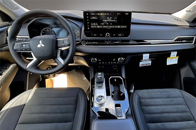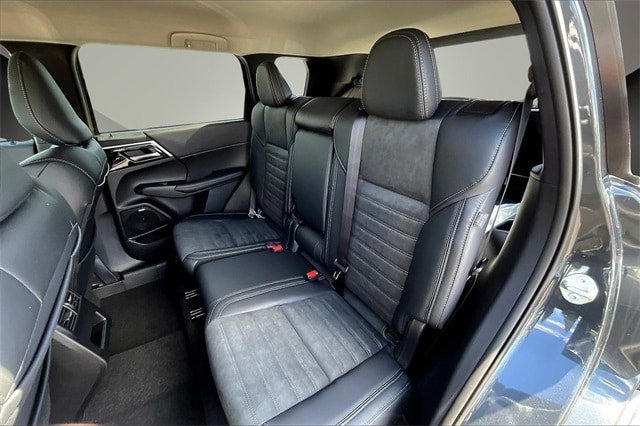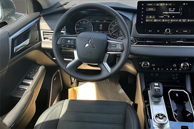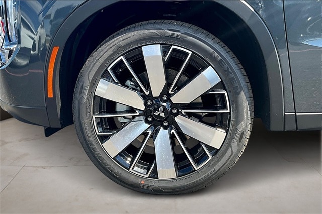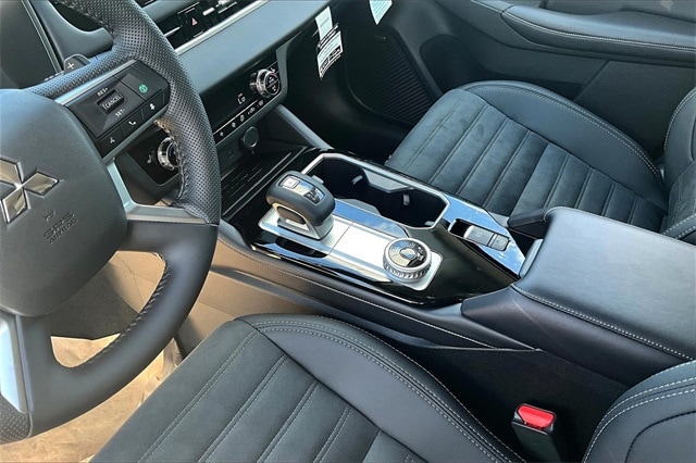 4WD, 3rd row seats: split-bench, 4-Wheel Disc Brakes, 8 Speakers, ABS brakes, Air Conditioning, Alloy wheels, AM/FM radio: SiriusXM, Android Auto & Apple CarPlay, Auto High-beam Headlights, Auto-dimming Rear-View mirror, Automatic temperature control, Brake assist, Bumpers: body-color, Driver door bin, Driver vanity mirror, Dual front impact airbags, Dual front side impact airbags, Electronic Stability Control, Emergency communication system: Mitsubishi Connect w/ 24-month trial, Exterior Parking Camera Rear, Four wheel independent suspension, Front anti-roll bar, Front Bucket Seats, Front Center Armrest w/Storage, Front dual zone A/C, Front fog lights, Front reading lights, Fully automatic headlights, Garage door transmitter: HomeLink, Headlight cleaning, Heated door mirrors, Heated Front Bucket Seats, Heated front seats, Illuminated entry, Knee airbag, Leather Shift Knob, Leather steering wheel, Low tire pressure warning, Navigation System, Occupant sensing airbag, Outside temperature display, Overhead airbag, Overhead console, Panic alarm, Passenger door bin, Passenger vanity mirror, Power door mirrors, Power driver seat, Power Liftgate, Power steering, Power windows, Radio data system, Radio: AM/FM 12.3" Navigation w/Smartphone-Link, Rain sensing wipers, Rear anti-roll bar, Rear seat center armrest, Rear side impact airbag, Rear window defroster, Rear window wiper, Reclining 3rd row seat, Remote keyless entry, Security system, Speed control, Speed-Sensitive Wipers, Split folding rear seat, Spoiler, Steering wheel mounted audio controls, Synthetic Leather Seating Surfaces, Tachometer, Telescoping steering wheel, Tilt steering wheel, Traction control, Trip computer, Turn signal indicator mirrors, and Variably intermittent wipers. 24/30 City/Highway MPG