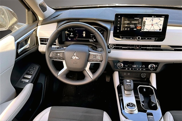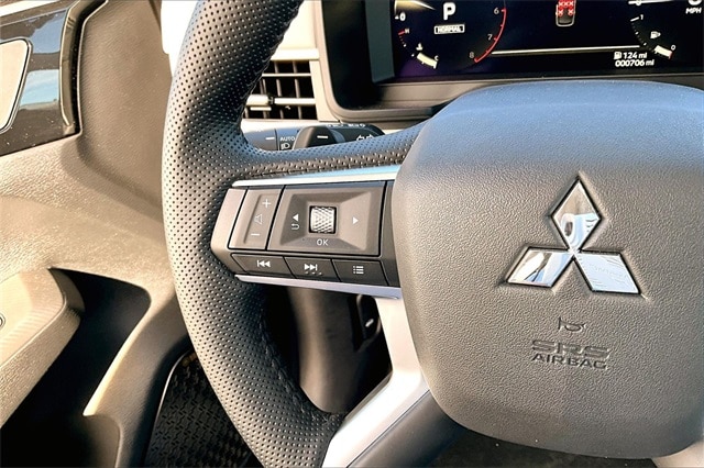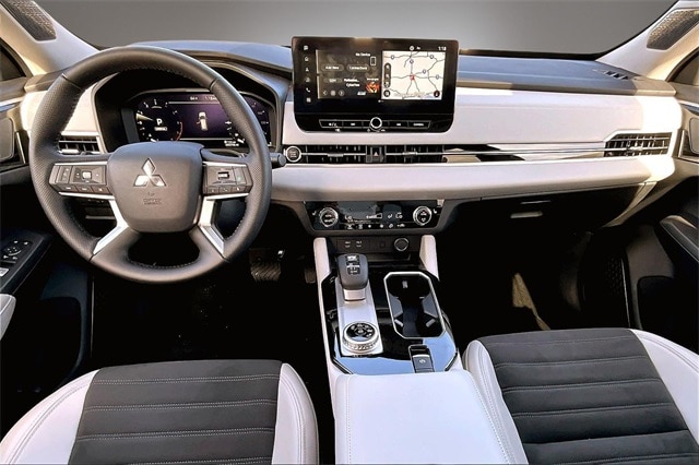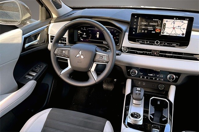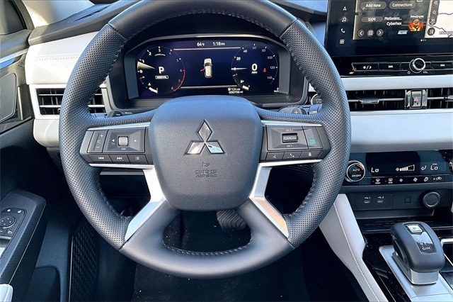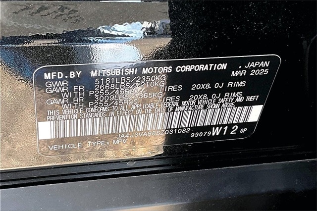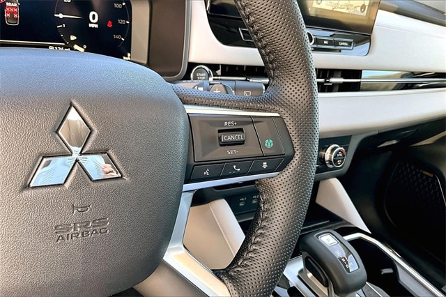 3rd row seats: split-bench, 4-Wheel Disc Brakes, 8 Speakers, ABS brakes, Air Conditioning, Alloy wheels, AM/FM radio: SiriusXM, Android Auto & Apple CarPlay, Auto High-beam Headlights, Auto-dimming Rear-View mirror, Automatic temperature control, Brake assist, Bumpers: body-color, Driver door bin, Driver vanity mirror, Dual front impact airbags, Dual front side impact airbags, Electronic Stability Control, Emergency communication system: Mitsubishi Connect w/ 24-month trial, Exterior Parking Camera Rear, Four wheel independent suspension, Front anti-roll bar, Front Bucket Seats, Front Center Armrest w/Storage, Front dual zone A/C, Front fog lights, Front reading lights, Fully automatic headlights, Garage door transmitter: HomeLink, Heated door mirrors, Heated Front Bucket Seats, Heated front seats, Illuminated entry, Knee airbag, Leather Shift Knob, Leather steering wheel, Low tire pressure warning, Navigation System, Occupant sensing airbag, Outside temperature display, Overhead airbag, Overhead console, Panic alarm, Passenger door bin, Passenger vanity mirror, Power door mirrors, Power driver seat, Power Liftgate, Power steering, Power windows, Radio data system, Radio: AM/FM 12.3" Navigation w/Smartphone-Link, Rain sensing wipers, Rear anti-roll bar, Rear seat center armrest, Rear side impact airbag, Rear window defroster, Rear window wiper, Reclining 3rd row seat, Remote keyless entry, Security system, Speed control, Speed-Sensitive Wipers, Split folding rear seat, Spoiler, Steering wheel mounted audio controls, Synthetic Leather Seating Surfaces, Tachometer, Telescoping steering wheel, Tilt steering wheel, Traction control, Trip computer, Turn signal indicator mirrors, Variably intermittent wipers, and Wheels: 20" Two-Tone Alloy. 24/31 City/Highway MPG