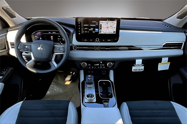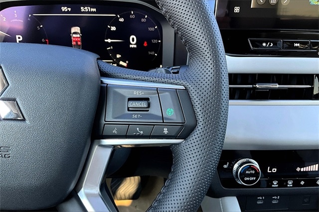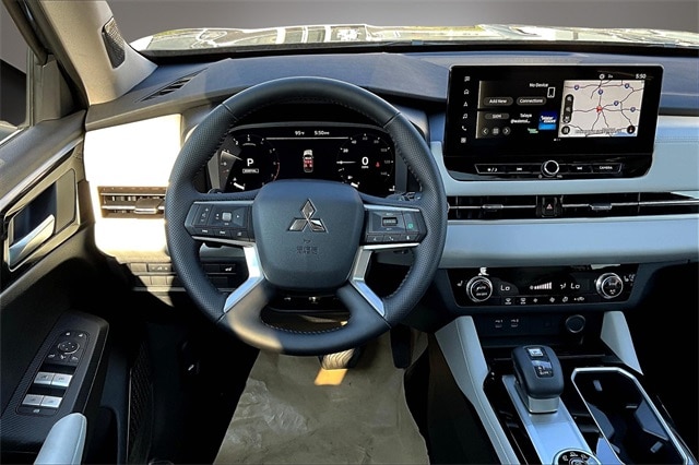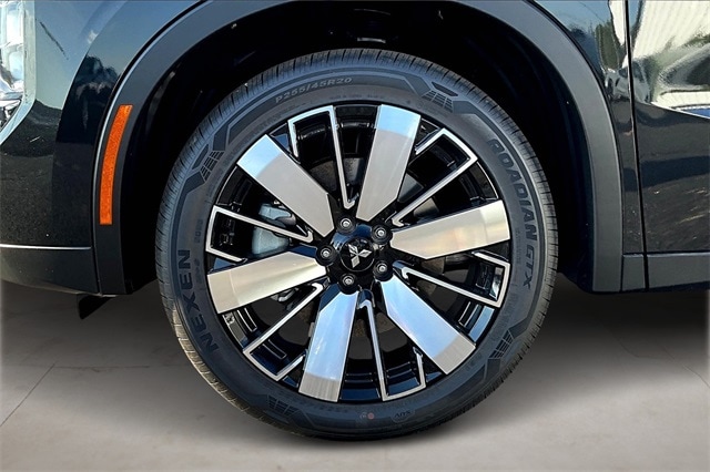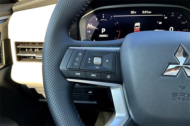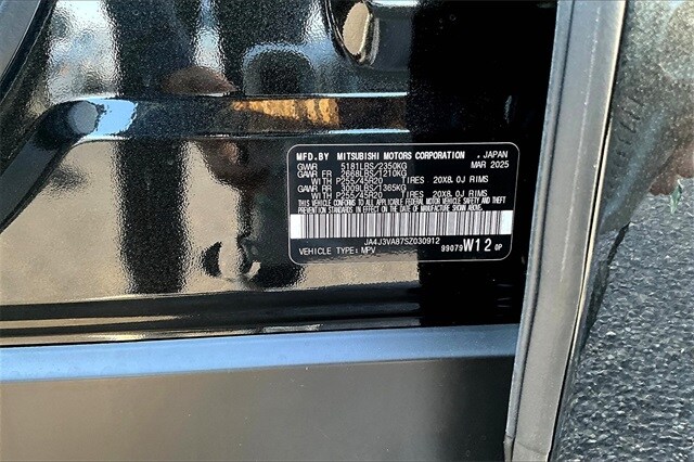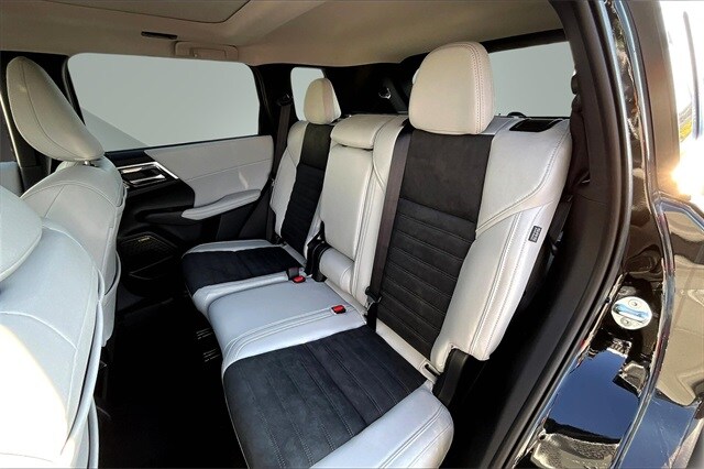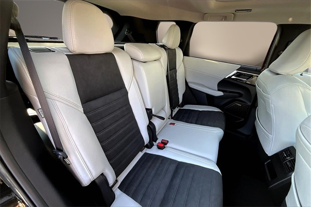 3rd row seats: split-bench, 4-Wheel Disc Brakes, 8 Speakers, ABS brakes, Air Conditioning, Alloy wheels, AM/FM radio: SiriusXM, Android Auto & Apple CarPlay, Auto High-beam Headlights, Auto-dimming Rear-View mirror, Automatic temperature control, Brake assist, Bumpers: body-color, Driver door bin, Driver vanity mirror, Dual front impact airbags, Dual front side impact airbags, Electronic Stability Control, Emergency communication system: Mitsubishi Connect w/ 24-month trial, Exterior Parking Camera Rear, Four wheel independent suspension, Front anti-roll bar, Front Bucket Seats, Front Center Armrest w/Storage, Front dual zone A/C, Front fog lights, Front reading lights, Fully automatic headlights, Garage door transmitter: HomeLink, Heated door mirrors, Heated Front Bucket Seats, Heated front seats, Illuminated entry, Knee airbag, Leather Shift Knob, Leather steering wheel, Low tire pressure warning, Navigation System, Occupant sensing airbag, Outside temperature display, Overhead airbag, Overhead console, Panic alarm, Passenger door bin, Passenger vanity mirror, Power door mirrors, Power driver seat, Power Liftgate, Power steering, Power windows, Radio data system, Radio: AM/FM 12.3" Navigation w/Smartphone-Link, Rain sensing wipers, Rear anti-roll bar, Rear seat center armrest, Rear side impact airbag, Rear window defroster, Rear window wiper, Reclining 3rd row seat, Remote keyless entry, Security system, Speed control, Speed-Sensitive Wipers, Split folding rear seat, Spoiler, Steering wheel mounted audio controls, Synthetic Leather Seating Surfaces, Tachometer, Telescoping steering wheel, Tilt steering wheel, Traction control, Trip computer, Turn signal indicator mirrors, Variably intermittent wipers, and Wheels: 20" Two-Tone Alloy. 24/31 City/Highway MPG