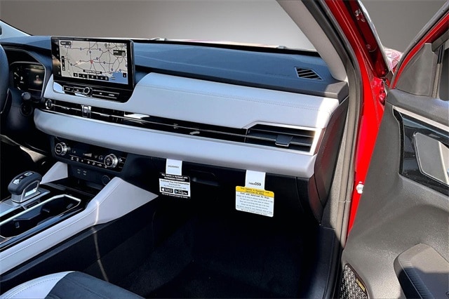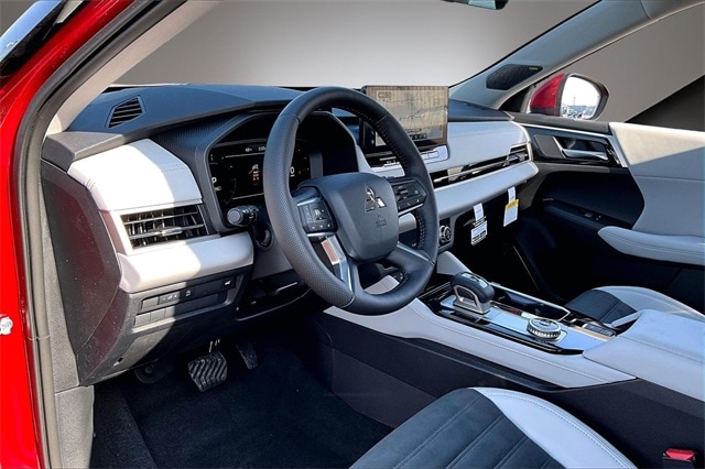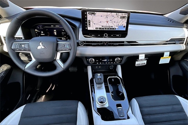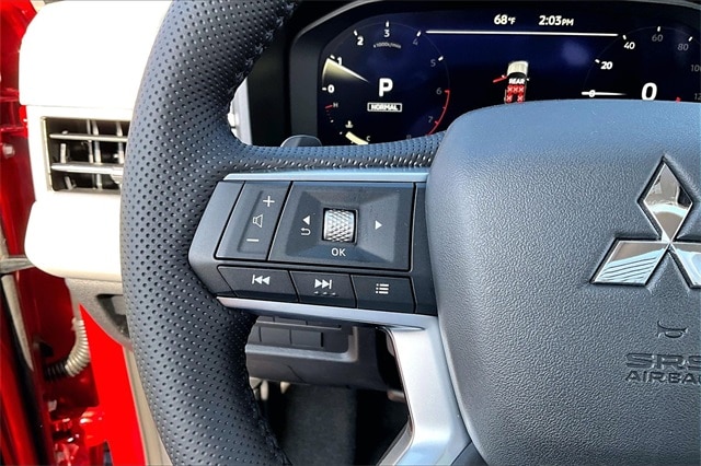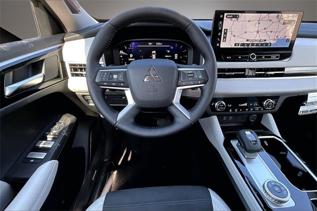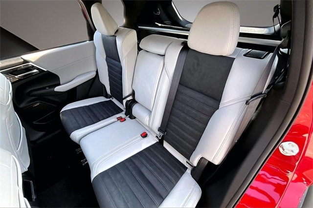3rd row seats: split-bench, 4-Wheel Disc Brakes, 8 Speakers, ABS brakes, Air Conditioning, Alloy wheels, AM/FM radio: SiriusXM, Android Auto & Apple CarPlay, Auto High-beam Headlights, Auto-dimming Rear-View mirror, Automatic temperature control, Brake assist, Bumpers: body-color, Compass, Delay-off headlights, Driver door bin, Driver vanity mirror, Dual front impact airbags, Dual front side impact airbags, Electronic Stability Control, Emergency communication system: Mitsubishi Connect w/ 24-month trial, Exterior Parking Camera Rear, Four wheel independent suspension, Front anti-roll bar, Front Bucket Seats, Front Center Armrest w/Storage, Front dual zone A/C, Front fog lights, Front reading lights, Fully automatic headlights, Garage door transmitter: HomeLink, Heated door mirrors, Heated Front Bucket Seats, Heated front seats, Illuminated entry, Knee airbag, Leather Shift Knob, Leather steering wheel, Low tire pressure warning, Navigation System, Occupant sensing airbag, Outside temperature display, Overhead airbag, Overhead console, Panic alarm, Passenger door bin, Passenger vanity mirror, Power door mirrors, Power driver seat, Power Liftgate, Power steering, Power windows, Radio data system, Radio: AM/FM 12.3" Navigation with Smartphone-Link, Rain sensing wipers, Rear anti-roll bar, Rear seat center armrest, Rear side impact airbag, Rear window defroster, Rear window wiper, Reclining 3rd row seat, Remote keyless entry, Security system, Speed control, Speed-Sensitive Wipers, Split folding rear seat, Spoiler, Steering wheel mounted audio controls, Synthetic Leather Seating Surfaces, Tachometer, Telescoping steering wheel, Tilt steering wheel, Traction control, Trip computer, Turn signal indicator mirrors, Variably intermittent wipers, and Wheels: 20" Two-Tone Alloy.