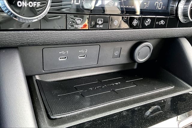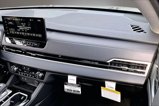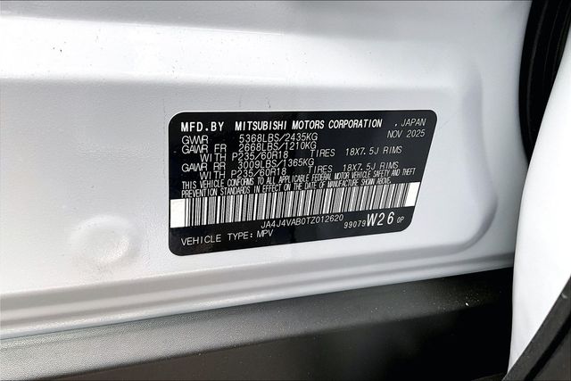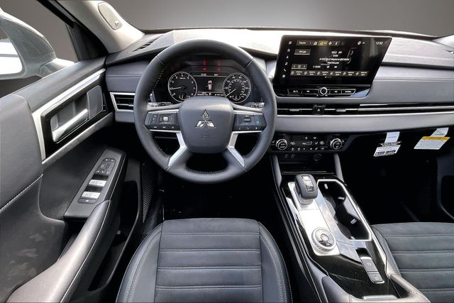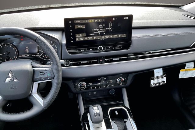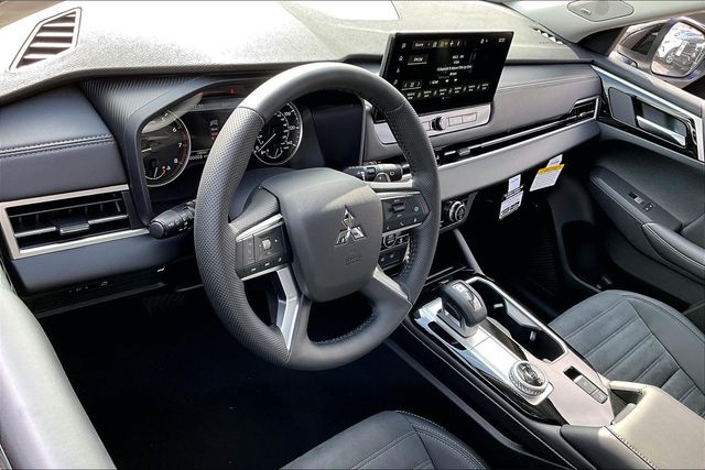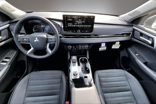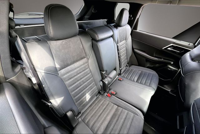 AWD, 3rd row seats: split-bench, 4-Wheel Disc Brakes, 8 Speakers, ABS brakes, Air Conditioning, Alloy wheels, AM/FM radio: SiriusXM, Android Auto & Apple CarPlay, Auto High-beam Headlights, Auto-dimming Rear-View mirror, Automatic temperature control, Brake assist, Bumpers: body-color, Compass, Delay-off headlights, Driver door bin, Driver vanity mirror, Dual front impact airbags, Dual front side impact airbags, Electronic Stability Control, Emergency communication system: Mitsubishi Connect w/ 24-month trial, Exterior Parking Camera Rear, Four wheel independent suspension, Front anti-roll bar, Front Bucket Seats, Front Center Armrest w/Storage, Front dual zone A/C, Front fog lights, Front reading lights, Fully automatic headlights, Headlight cleaning, Heated door mirrors, Heated Front Bucket Seats, Heated front seats, Illuminated entry, Knee airbag, Leather Shift Knob, Leather steering wheel, Low tire pressure warning, Navigation System, Occupant sensing airbag, Outside temperature display, Overhead airbag, Overhead console, Panic alarm, Passenger door bin, Passenger vanity mirror, Power door mirrors, Power driver seat, Power Liftgate, Power steering, Power windows, Radio data system, Radio: AM/FM 12.3" Navigation with Smartphone-Link, Rain sensing wipers, Rear anti-roll bar, Rear seat center armrest, Rear side impact airbag, Rear window defroster, Rear window wiper, Reclining 3rd row seat, Remote keyless entry, Security system, Speed control, Speed-Sensitive Wipers, Split folding rear seat, Spoiler, Steering wheel mounted audio controls, Synthetic Leather Seating Surfaces, Tachometer, Telescoping steering wheel, Tilt steering wheel, Traction control, Trip computer, Turn signal indicator mirrors, and Variably intermittent wipers.