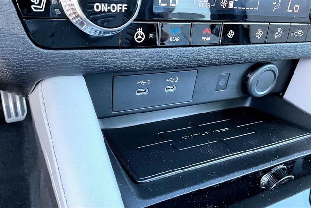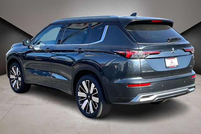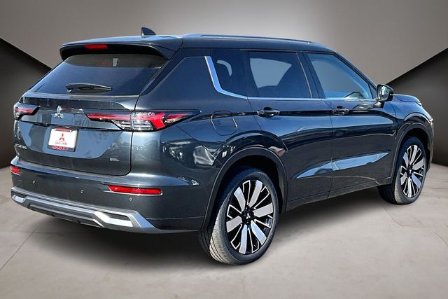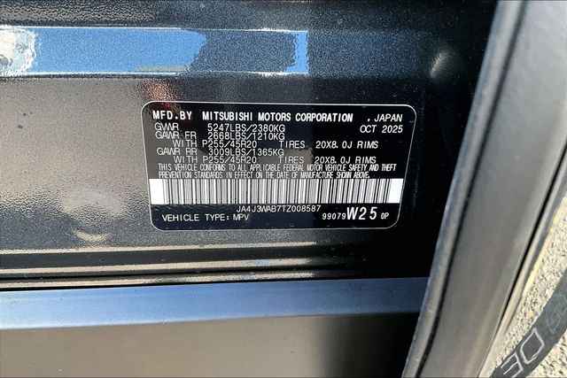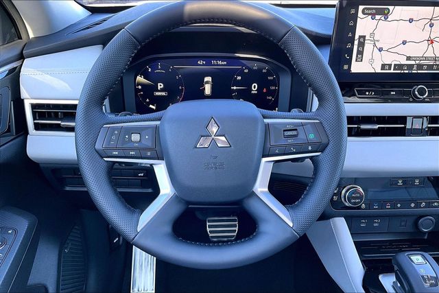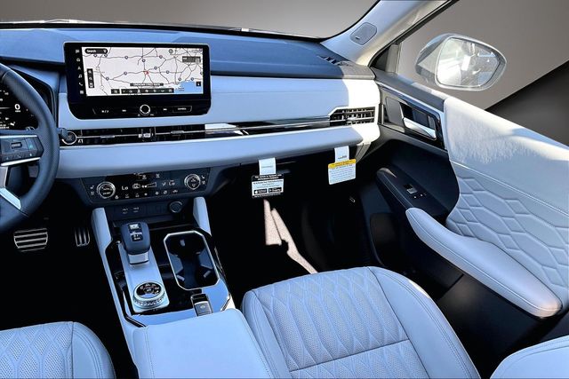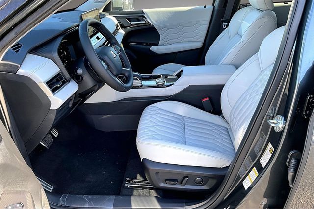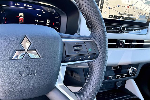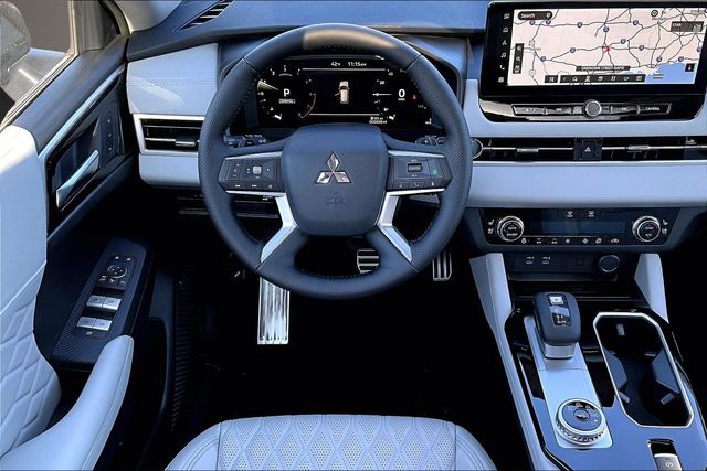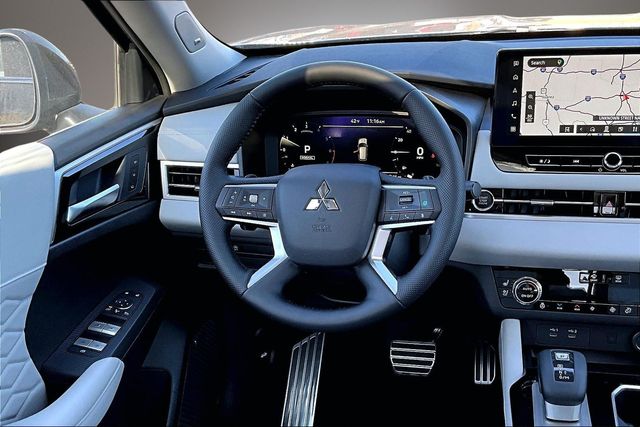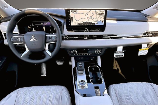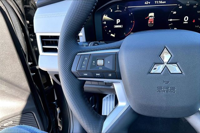 3rd row seats: split-bench, 4-Wheel Disc Brakes, ABS brakes, Air Conditioning, Alloy wheels, AM/FM radio: SiriusXM, Android Auto & Apple CarPlay, Auto High-beam Headlights, Automatic temperature control, Brake assist, Bumpers: body-color, Compass, Delay-off headlights, Driver door bin, Driver vanity mirror, Dual front impact airbags, Dual front side impact airbags, Electronic Stability Control, Emergency communication system: Mitsubishi Connect w/ 24-month trial, Exterior Parking Camera Rear, Four wheel independent suspension, Front anti-roll bar, Front Bucket Seats, Front Center Armrest w/Storage, Front dual zone A/C, Front fog lights, Front reading lights, Fully automatic headlights, Heated door mirrors, Heated front seats, Heated rear seats, Heated steering wheel, Illuminated entry, Knee airbag, Leather Shift Knob, Leather steering wheel, Low tire pressure warning, Memory seat, Navigation System, Occupant sensing airbag, Outside temperature display, Overhead airbag, Overhead console, Panic alarm, Passenger door bin, Passenger vanity mirror, Power door mirrors, Power driver seat, Power Liftgate, Power moonroof: Panoramic, Power passenger seat, Power steering, Power windows, Radio data system, Radio: AM/FM 12.3" Navigation with Smartphone-Link, Rain sensing wipers, Rear air conditioning, Rear anti-roll bar, Rear seat center armrest, Rear side impact airbag, Rear window defroster, Rear window wiper, Reclining 3rd row seat, Remote keyless entry, Security system, Semi-Aniline Leather Appointed Seating Surfaces, Speed control, Speed-Sensitive Wipers, Split folding rear seat, Spoiler, Steering wheel mounted audio controls, Tachometer, Telescoping steering wheel, Tilt steering wheel, Traction control, Trip computer, Turn signal indicator mirrors, and Variably intermittent wipers.