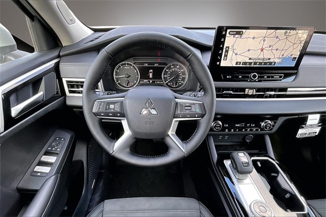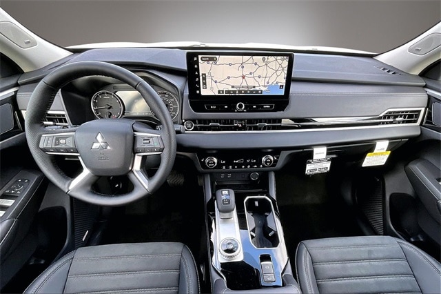 3rd row seats: split-bench, 4-Wheel Disc Brakes, 8 Speakers, ABS brakes, Air Conditioning, Alloy wheels, AM/FM radio: SiriusXM, Android Auto & Apple CarPlay, Auto High-beam Headlights, Auto-dimming Rear-View mirror, Automatic temperature control, Brake assist, Bumpers: body-color, Compass, Delay-off headlights, Driver door bin, Driver vanity mirror, Dual front impact airbags, Dual front side impact airbags, Electronic Stability Control, Emergency communication system: Mitsubishi Connect w/ 24-month trial, Exterior Parking Camera Rear, Four wheel independent suspension, Front anti-roll bar, Front Bucket Seats, Front Center Armrest w/Storage, Front dual zone A/C, Front fog lights, Front reading lights, Fully automatic headlights, Garage door transmitter: HomeLink, Heated door mirrors, Heated Front Bucket Seats, Heated front seats, Illuminated entry, Knee airbag, Leather Shift Knob, Leather steering wheel, Low tire pressure warning, Navigation System, Occupant sensing airbag, Outside temperature display, Overhead airbag, Overhead console, Panic alarm, Passenger door bin, Passenger vanity mirror, Power door mirrors, Power driver seat, Power Liftgate, Power steering, Power windows, Radio data system, Radio: AM/FM 12.3" Navigation with Smartphone-Link, Rain sensing wipers, Rear anti-roll bar, Rear seat center armrest, Rear side impact airbag, Rear window defroster, Rear window wiper, Reclining 3rd row seat, Remote keyless entry, Security system, Speed control, Speed-Sensitive Wipers, Split folding rear seat, Spoiler, Steering wheel mounted audio controls, Synthetic Leather Seating Surfaces, Tachometer, Telescoping steering wheel, Tilt steering wheel, Traction control, Trip computer, Turn signal indicator mirrors, Variably intermittent wipers, and Wheels: 20" Two-Tone Alloy.