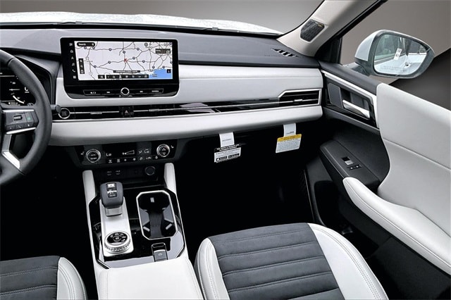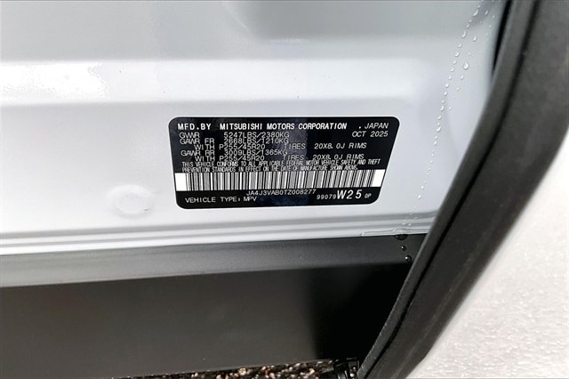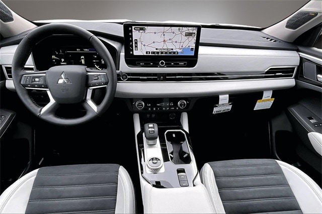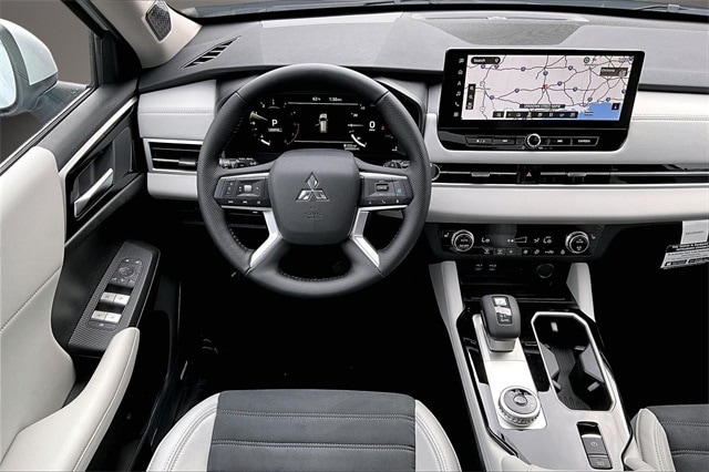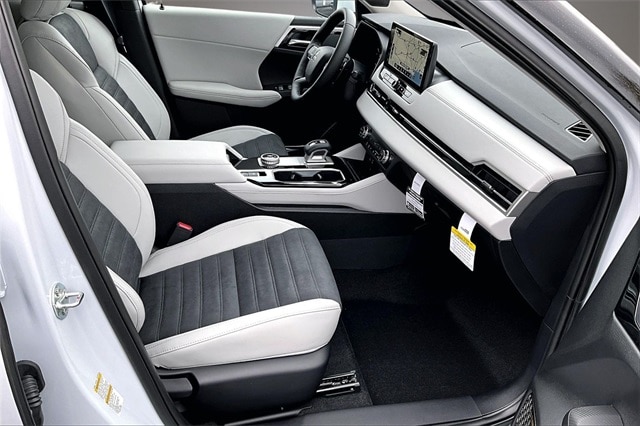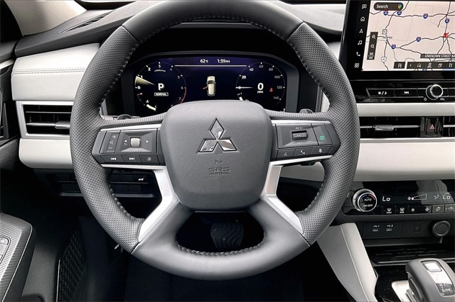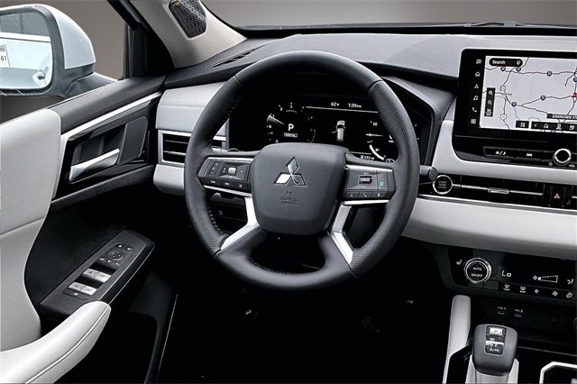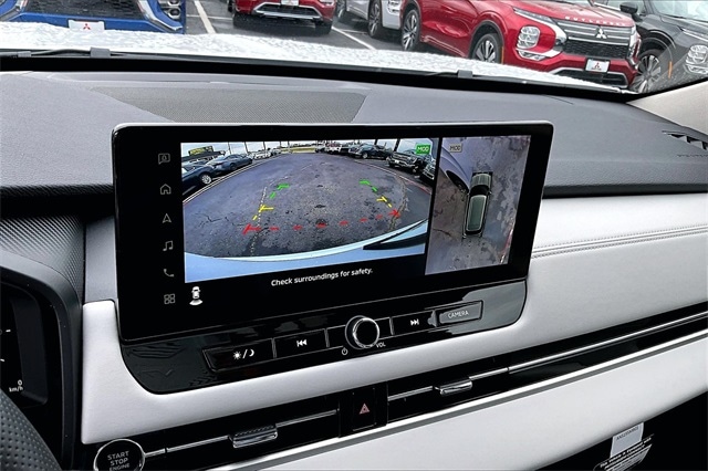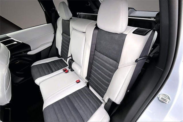 3rd row seats: split-bench, 4-Wheel Disc Brakes, 8 Speakers, ABS brakes, Air Conditioning, Alloy wheels, AM/FM radio: SiriusXM, Android Auto & Apple CarPlay, Auto High-beam Headlights, Auto-dimming Rear-View mirror, Automatic temperature control, Brake assist, Bumpers: body-color, Driver door bin, Driver vanity mirror, Dual front impact airbags, Dual front side impact airbags, Electronic Stability Control, Emergency communication system: Mitsubishi Connect w/ 24-month trial, Exterior Parking Camera Rear, Four wheel independent suspension, Front anti-roll bar, Front Bucket Seats, Front Center Armrest w/Storage, Front dual zone A/C, Front fog lights, Front reading lights, Fully automatic headlights, Garage door transmitter: HomeLink, Heated door mirrors, Heated Front Bucket Seats, Heated front seats, Illuminated entry, Knee airbag, Leather Shift Knob, Leather steering wheel, Low tire pressure warning, Navigation System, Occupant sensing airbag, Outside temperature display, Overhead airbag, Overhead console, Panic alarm, Passenger door bin, Passenger vanity mirror, Power door mirrors, Power driver seat, Power Liftgate, Power steering, Power windows, Radio data system, Radio: AM/FM 12.3" Navigation w/Smartphone-Link, Rain sensing wipers, Rear anti-roll bar, Rear seat center armrest, Rear side impact airbag, Rear window defroster, Rear window wiper, Reclining 3rd row seat, Remote keyless entry, Security system, Speed control, Speed-Sensitive Wipers, Split folding rear seat, Spoiler, Steering wheel mounted audio controls, Synthetic Leather Seating Surfaces, Tachometer, Telescoping steering wheel, Tilt steering wheel, Traction control, Trip computer, Turn signal indicator mirrors, Variably intermittent wipers, and Wheels: 20" Two-Tone Alloy. Recent Arrival!