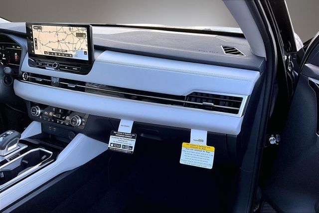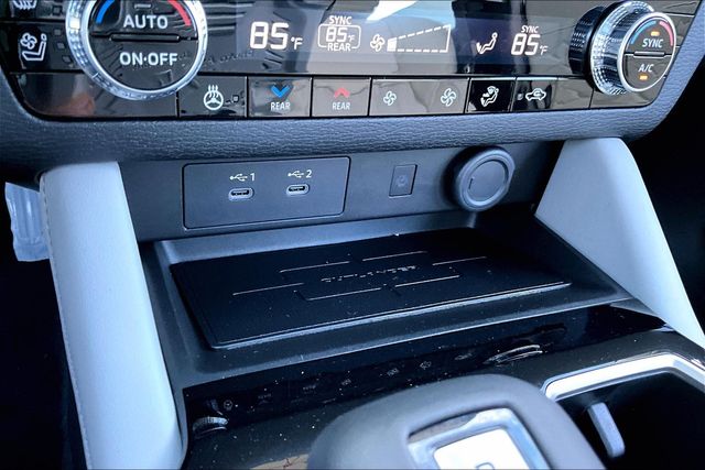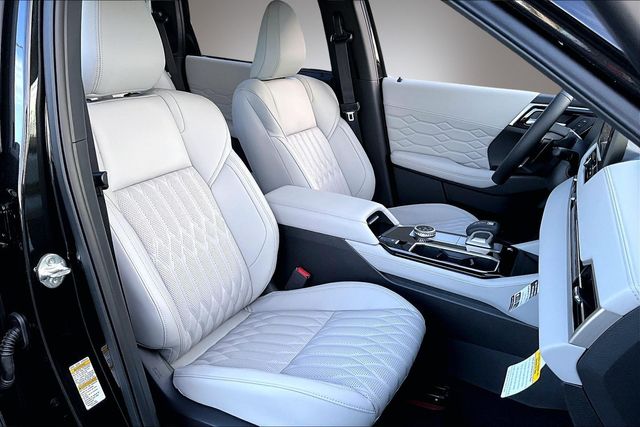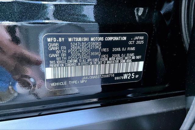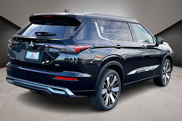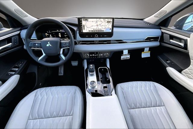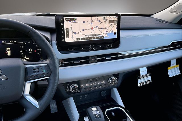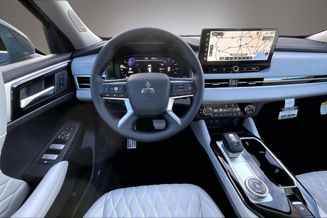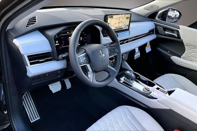 3rd row seats: split-bench, 4-Wheel Disc Brakes, ABS brakes, Air Conditioning, Alloy wheels, AM/FM radio: SiriusXM, Android Auto & Apple CarPlay, Auto High-beam Headlights, Automatic temperature control, Brake assist, Bumpers: body-color, Compass, Delay-off headlights, Driver door bin, Driver vanity mirror, Dual front impact airbags, Dual front side impact airbags, Electronic Stability Control, Emergency communication system: Mitsubishi Connect w/ 24-month trial, Exterior Parking Camera Rear, Four wheel independent suspension, Front anti-roll bar, Front Bucket Seats, Front Center Armrest w/Storage, Front dual zone A/C, Front fog lights, Front reading lights, Fully automatic headlights, Heated door mirrors, Heated front seats, Heated rear seats, Heated steering wheel, Illuminated entry, Knee airbag, Leather Shift Knob, Leather steering wheel, Low tire pressure warning, Memory seat, Navigation System, Occupant sensing airbag, Outside temperature display, Overhead airbag, Overhead console, Panic alarm, Passenger door bin, Passenger vanity mirror, Power door mirrors, Power driver seat, Power Liftgate, Power moonroof: Panoramic, Power passenger seat, Power steering, Power windows, Radio data system, Radio: AM/FM 12.3" Navigation with Smartphone-Link, Rain sensing wipers, Rear air conditioning, Rear anti-roll bar, Rear seat center armrest, Rear side impact airbag, Rear window defroster, Rear window wiper, Reclining 3rd row seat, Remote keyless entry, Security system, Semi-Aniline Leather Appointed Seating Surfaces, Speed control, Speed-Sensitive Wipers, Split folding rear seat, Spoiler, Steering wheel mounted audio controls, Tachometer, Telescoping steering wheel, Tilt steering wheel, Traction control, Trip computer, Turn signal indicator mirrors, and Variably intermittent wipers.