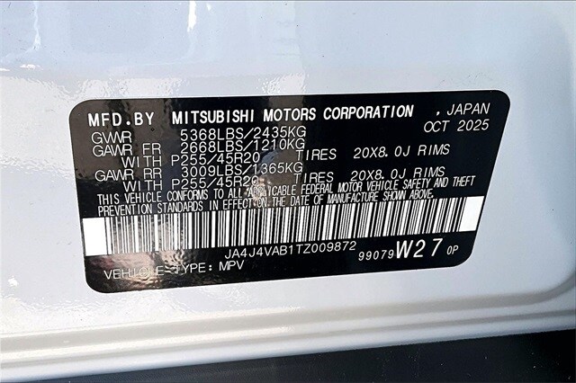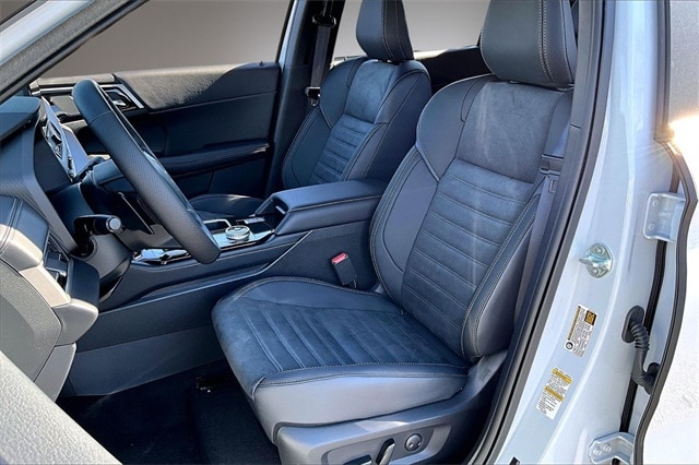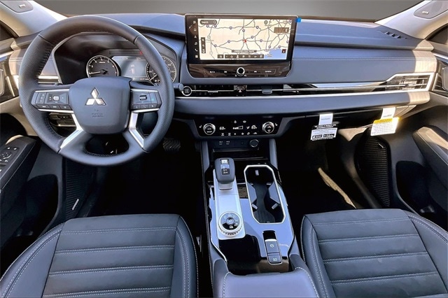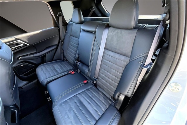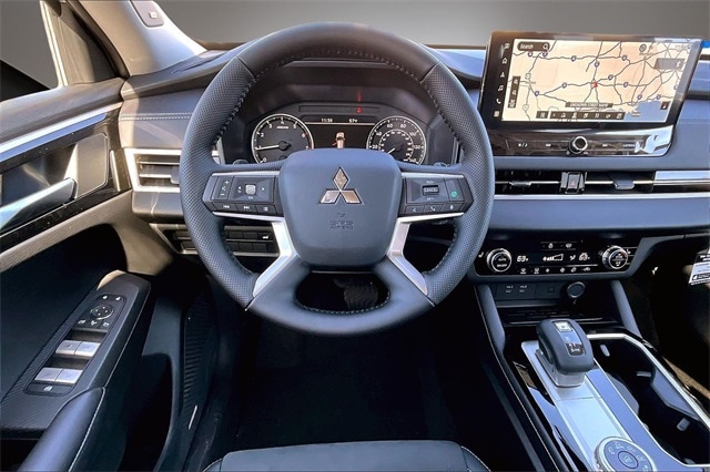 4WD, 3rd row seats: split-bench, 4-Wheel Disc Brakes, 8 Speakers, ABS brakes, Air Conditioning, Alloy wheels, AM/FM radio: SiriusXM, Android Auto & Apple CarPlay, Auto High-beam Headlights, Auto-dimming Rear-View mirror, Automatic temperature control, Brake assist, Bumpers: body-color, Compass, Delay-off headlights, Driver door bin, Driver vanity mirror, Dual front impact airbags, Dual front side impact airbags, Electronic Stability Control, Emergency communication system: Mitsubishi Connect w/ 24-month trial, Exterior Parking Camera Rear, Four wheel independent suspension, Front anti-roll bar, Front Bucket Seats, Front Center Armrest w/Storage, Front dual zone A/C, Front fog lights, Front reading lights, Fully automatic headlights, Headlight cleaning, Heated door mirrors, Heated Front Bucket Seats, Heated front seats, Illuminated entry, Knee airbag, Leather Shift Knob, Leather steering wheel, Low tire pressure warning, Navigation System, Occupant sensing airbag, Outside temperature display, Overhead airbag, Overhead console, Panic alarm, Passenger door bin, Passenger vanity mirror, Power door mirrors, Power driver seat, Power Liftgate, Power steering, Power windows, Radio data system, Radio: AM/FM 12.3" Navigation with Smartphone-Link, Rain sensing wipers, Rear anti-roll bar, Rear seat center armrest, Rear side impact airbag, Rear window defroster, Rear window wiper, Reclining 3rd row seat, Remote keyless entry, Security system, Speed control, Speed-Sensitive Wipers, Split folding rear seat, Spoiler, Steering wheel mounted audio controls, Synthetic Leather Seating Surfaces, Tachometer, Telescoping steering wheel, Tilt steering wheel, Traction control, Trip computer, Turn signal indicator mirrors, and Variably intermittent wipers.