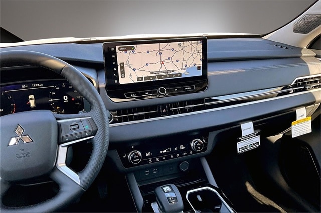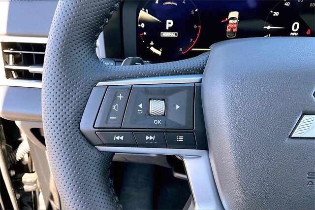 3rd row seats: split-bench, 4-Wheel Disc Brakes, 8 Speakers, ABS brakes, Air Conditioning, Alloy wheels, AM/FM radio: SiriusXM, Android Auto & Apple CarPlay, Auto High-beam Headlights, Auto-dimming Rear-View mirror, Automatic temperature control, Brake assist, Bumpers: body-color, Compass, Delay-off headlights, Driver door bin, Driver vanity mirror, Dual front impact airbags, Dual front side impact airbags, Electronic Stability Control, Emergency communication system: Mitsubishi Connect w/ 24-month trial, Exterior Parking Camera Rear, Four wheel independent suspension, Front anti-roll bar, Front Bucket Seats, Front Center Armrest w/Storage, Front dual zone A/C, Front fog lights, Front reading lights, Fully automatic headlights, Garage door transmitter: HomeLink, Heated door mirrors, Heated Front Bucket Seats, Heated front seats, Illuminated entry, Knee airbag, Leather Shift Knob, Leather steering wheel, Low tire pressure warning, Navigation System, Occupant sensing airbag, Outside temperature display, Overhead airbag, Overhead console, Panic alarm, Passenger door bin, Passenger vanity mirror, Power door mirrors, Power driver seat, Power Liftgate, Power steering, Power windows, Radio data system, Radio: AM/FM 12.3" Navigation with Smartphone-Link, Rain sensing wipers, Rear anti-roll bar, Rear seat center armrest, Rear side impact airbag, Rear window defroster, Rear window wiper, Reclining 3rd row seat, Remote keyless entry, Security system, Speed control, Speed-Sensitive Wipers, Split folding rear seat, Spoiler, Steering wheel mounted audio controls, Synthetic Leather Seating Surfaces, Tachometer, Telescoping steering wheel, Tilt steering wheel, Traction control, Trip computer, Turn signal indicator mirrors, Variably intermittent wipers, and Wheels: 20" Two-Tone Alloy.