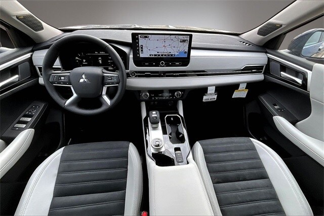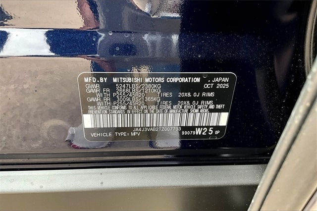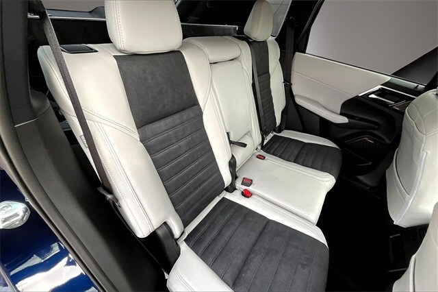3rd row seats: split-bench, 4-Wheel Disc Brakes, 8 Speakers, ABS brakes, Air Conditioning, Alloy wheels, AM/FM radio: SiriusXM, Android Auto & Apple CarPlay, Auto High-beam Headlights, Auto-dimming Rear-View mirror, Automatic temperature control, Brake assist, Bumpers: body-color, Compass, Delay-off headlights, Driver door bin, Driver vanity mirror, Dual front impact airbags, Dual front side impact airbags, Electronic Stability Control, Emergency communication system: Mitsubishi Connect w/ 24-month trial, Exterior Parking Camera Rear, Four wheel independent suspension, Front anti-roll bar, Front Bucket Seats, Front Center Armrest w/Storage, Front dual zone A/C, Front fog lights, Front reading lights, Fully automatic headlights, Garage door transmitter: HomeLink, Heated door mirrors, Heated Front Bucket Seats, Heated front seats, Illuminated entry, Knee airbag, Leather Shift Knob, Leather steering wheel, Low tire pressure warning, Navigation System, Occupant sensing airbag, Outside temperature display, Overhead airbag, Overhead console, Panic alarm, Passenger door bin, Passenger vanity mirror, Power door mirrors, Power driver seat, Power Liftgate, Power steering, Power windows, Radio data system, Radio: AM/FM 12.3" Navigation with Smartphone-Link, Rain sensing wipers, Rear anti-roll bar, Rear seat center armrest, Rear side impact airbag, Rear window defroster, Rear window wiper, Reclining 3rd row seat, Remote keyless entry, Security system, Speed control, Speed-Sensitive Wipers, Split folding rear seat, Spoiler, Steering wheel mounted audio controls, Synthetic Leather Seating Surfaces, Tachometer, Telescoping steering wheel, Tilt steering wheel, Traction control, Trip computer, Turn signal indicator mirrors, Variably intermittent wipers, and Wheels: 20" Two-Tone Alloy.