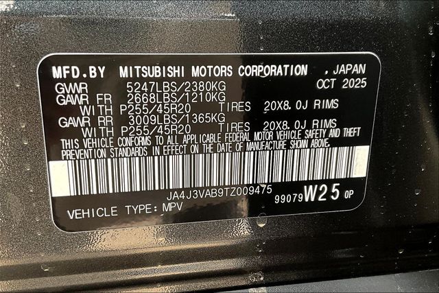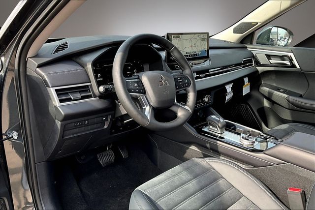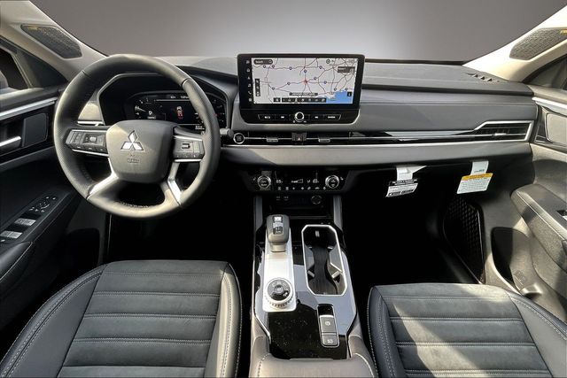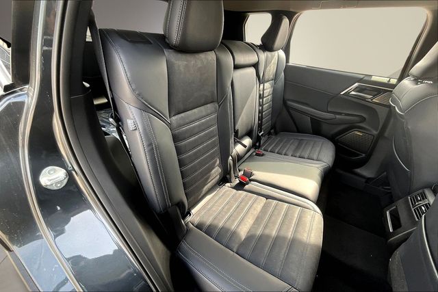 3rd row seats: split-bench, 4-Wheel Disc Brakes, 8 Speakers, ABS brakes, Air Conditioning, Alloy wheels, AM/FM radio: SiriusXM, Android Auto & Apple CarPlay, Auto High-beam Headlights, Auto-dimming Rear-View mirror, Automatic temperature control, Brake assist, Bumpers: body-color, Compass, Delay-off headlights, Driver door bin, Driver vanity mirror, Dual front impact airbags, Dual front side impact airbags, Electronic Stability Control, Emergency communication system: Mitsubishi Connect w/ 24-month trial, Exterior Parking Camera Rear, Four wheel independent suspension, Front anti-roll bar, Front Bucket Seats, Front Center Armrest w/Storage, Front dual zone A/C, Front fog lights, Front reading lights, Fully automatic headlights, Garage door transmitter: HomeLink, Heated door mirrors, Heated Front Bucket Seats, Heated front seats, Illuminated entry, Knee airbag, Leather Shift Knob, Leather steering wheel, Low tire pressure warning, Navigation System, Occupant sensing airbag, Outside temperature display, Overhead airbag, Overhead console, Panic alarm, Passenger door bin, Passenger vanity mirror, Power door mirrors, Power driver seat, Power Liftgate, Power steering, Power windows, Radio data system, Radio: AM/FM 12.3" Navigation with Smartphone-Link, Rain sensing wipers, Rear anti-roll bar, Rear seat center armrest, Rear side impact airbag, Rear window defroster, Rear window wiper, Reclining 3rd row seat, Remote keyless entry, Security system, Speed control, Speed-Sensitive Wipers, Split folding rear seat, Spoiler, Steering wheel mounted audio controls, Synthetic Leather Seating Surfaces, Tachometer, Telescoping steering wheel, Tilt steering wheel, Traction control, Trip computer, Turn signal indicator mirrors, Variably intermittent wipers, and Wheels: 20" Two-Tone Alloy.