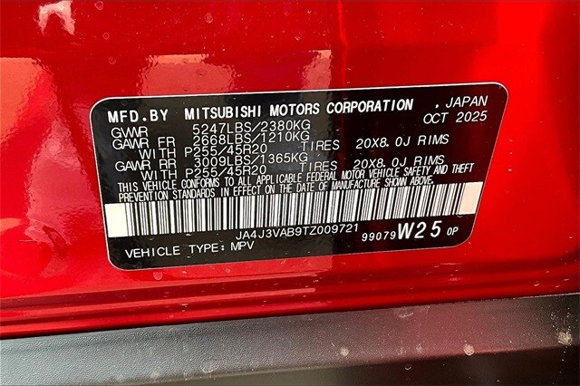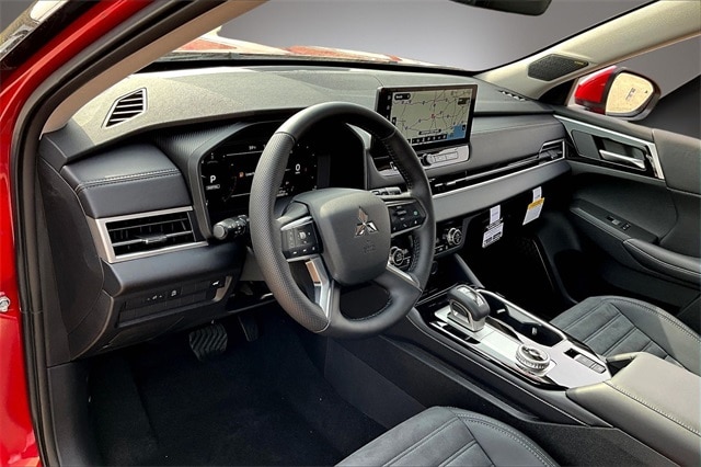 3rd row seats: split-bench, 4-Wheel Disc Brakes, 8 Speakers, ABS brakes, Air Conditioning, Alloy wheels, AM/FM radio: SiriusXM, Android Auto & Apple CarPlay, Auto High-beam Headlights, Auto-dimming Rear-View mirror, Automatic temperature control, Brake assist, Bumpers: body-color, Compass, Delay-off headlights, Driver door bin, Driver vanity mirror, Dual front impact airbags, Dual front side impact airbags, Electronic Stability Control, Emergency communication system: Mitsubishi Connect w/ 24-month trial, Exterior Parking Camera Rear, Four wheel independent suspension, Front anti-roll bar, Front Bucket Seats, Front Center Armrest w/Storage, Front dual zone A/C, Front fog lights, Front reading lights, Fully automatic headlights, Garage door transmitter: HomeLink, Heated door mirrors, Heated Front Bucket Seats, Heated front seats, Illuminated entry, Knee airbag, Leather Shift Knob, Leather steering wheel, Low tire pressure warning, Navigation System, Occupant sensing airbag, Outside temperature display, Overhead airbag, Overhead console, Panic alarm, Passenger door bin, Passenger vanity mirror, Power door mirrors, Power driver seat, Power Liftgate, Power steering, Power windows, Radio data system, Radio: AM/FM 12.3" Navigation with Smartphone-Link, Rain sensing wipers, Rear anti-roll bar, Rear seat center armrest, Rear side impact airbag, Rear window defroster, Rear window wiper, Reclining 3rd row seat, Remote keyless entry, Security system, Speed control, Speed-Sensitive Wipers, Split folding rear seat, Spoiler, Steering wheel mounted audio controls, Synthetic Leather Seating Surfaces, Tachometer, Telescoping steering wheel, Tilt steering wheel, Traction control, Trip computer, Turn signal indicator mirrors, Variably intermittent wipers, and Wheels: 20" Two-Tone Alloy.