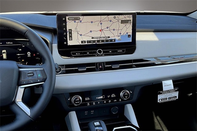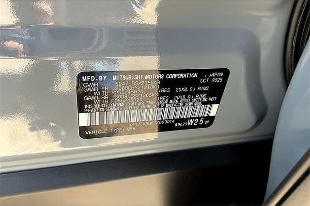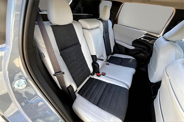 3rd row seats: split-bench, 4-Wheel Disc Brakes, 8 Speakers, ABS brakes, Air Conditioning, Alloy wheels, AM/FM radio: SiriusXM, Android Auto & Apple CarPlay, Auto High-beam Headlights, Auto-dimming Rear-View mirror, Automatic temperature control, Brake assist, Bumpers: body-color, Compass, Delay-off headlights, Driver door bin, Driver vanity mirror, Dual front impact airbags, Dual front side impact airbags, Electronic Stability Control, Emergency communication system: Mitsubishi Connect w/ 24-month trial, Exterior Parking Camera Rear, Four wheel independent suspension, Front anti-roll bar, Front Bucket Seats, Front Center Armrest w/Storage, Front dual zone A/C, Front fog lights, Front reading lights, Fully automatic headlights, Garage door transmitter: HomeLink, Heated door mirrors, Heated Front Bucket Seats, Heated front seats, Illuminated entry, Knee airbag, Leather Shift Knob, Leather steering wheel, Low tire pressure warning, Navigation System, Occupant sensing airbag, Outside temperature display, Overhead airbag, Overhead console, Panic alarm, Passenger door bin, Passenger vanity mirror, Power door mirrors, Power driver seat, Power Liftgate, Power steering, Power windows, Radio data system, Radio: AM/FM 12.3" Navigation with Smartphone-Link, Rain sensing wipers, Rear anti-roll bar, Rear seat center armrest, Rear side impact airbag, Rear window defroster, Rear window wiper, Reclining 3rd row seat, Remote keyless entry, Security system, Speed control, Speed-Sensitive Wipers, Split folding rear seat, Spoiler, Steering wheel mounted audio controls, Synthetic Leather Seating Surfaces, Tachometer, Telescoping steering wheel, Tilt steering wheel, Traction control, Trip computer, Turn signal indicator mirrors, Variably intermittent wipers, and Wheels: 20" Two-Tone Alloy.