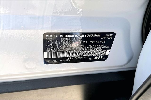 AWD, 3rd row seats: split-bench, 4-Wheel Disc Brakes, 8 Speakers, ABS brakes, Air Conditioning, Alloy wheels, AM/FM radio: SiriusXM, Android Auto & Apple CarPlay, Auto High-beam Headlights, Auto-dimming Rear-View mirror, Automatic temperature control, Brake assist, Bumpers: body-color, Compass, Delay-off headlights, Driver door bin, Driver vanity mirror, Dual front impact airbags, Dual front side impact airbags, Electronic Stability Control, Emergency communication system: Mitsubishi Connect w/ 24-month trial, Exterior Parking Camera Rear, Four wheel independent suspension, Front anti-roll bar, Front Bucket Seats, Front Center Armrest w/Storage, Front dual zone A/C, Front fog lights, Front reading lights, Fully automatic headlights, Headlight cleaning, Heated door mirrors, Heated Front Bucket Seats, Heated front seats, Illuminated entry, Knee airbag, Leather Shift Knob, Leather steering wheel, Low tire pressure warning, Navigation System, Occupant sensing airbag, Outside temperature display, Overhead airbag, Overhead console, Panic alarm, Passenger door bin, Passenger vanity mirror, Power door mirrors, Power driver seat, Power Liftgate, Power steering, Power windows, Radio data system, Radio: AM/FM 12.3" Navigation with Smartphone-Link, Rain sensing wipers, Rear anti-roll bar, Rear seat center armrest, Rear side impact airbag, Rear window defroster, Rear window wiper, Reclining 3rd row seat, Remote keyless entry, Security system, Speed control, Speed-Sensitive Wipers, Split folding rear seat, Spoiler, Steering wheel mounted audio controls, Synthetic Leather Seating Surfaces, Tachometer, Telescoping steering wheel, Tilt steering wheel, Traction control, Trip computer, Turn signal indicator mirrors, and Variably intermittent wipers.