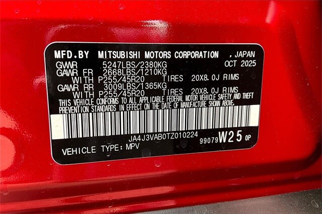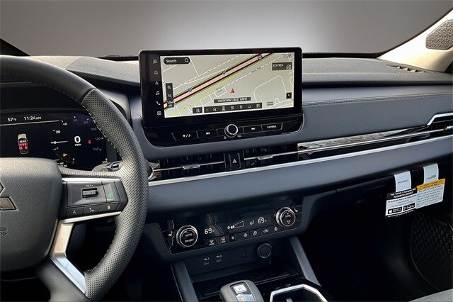 3rd row seats: split-bench, 4-Wheel Disc Brakes, 8 Speakers, ABS brakes, Air Conditioning, Alloy wheels, AM/FM radio: SiriusXM, Android Auto & Apple CarPlay, Auto High-beam Headlights, Auto-dimming Rear-View mirror, Automatic temperature control, Brake assist, Bumpers: body-color, Driver door bin, Driver vanity mirror, Dual front impact airbags, Dual front side impact airbags, Electronic Stability Control, Emergency communication system: Mitsubishi Connect w/ 24-month trial, Exterior Parking Camera Rear, Four wheel independent suspension, Front anti-roll bar, Front Bucket Seats, Front Center Armrest w/Storage, Front dual zone A/C, Front fog lights, Front reading lights, Fully automatic headlights, Garage door transmitter: HomeLink, Heated door mirrors, Heated Front Bucket Seats, Heated front seats, Illuminated entry, Knee airbag, Leather Shift Knob, Leather steering wheel, Low tire pressure warning, Navigation System, Occupant sensing airbag, Outside temperature display, Overhead airbag, Overhead console, Panic alarm, Passenger door bin, Passenger vanity mirror, Power door mirrors, Power driver seat, Power Liftgate, Power steering, Power windows, Radio data system, Rain sensing wipers, Rear anti-roll bar, Rear seat center armrest, Rear side impact airbag, Rear window defroster, Rear window wiper, Reclining 3rd row seat, Remote keyless entry, Security system, Speed control, Speed-Sensitive Wipers, Split folding rear seat, Spoiler, Steering wheel mounted audio controls, Synthetic Leather Seating Surfaces, Tachometer, Telescoping steering wheel, Tilt steering wheel, Traction control, Trip computer, Turn signal indicator mirrors, Variably intermittent wipers, and Wheels: 20" Two-Tone Alloy.