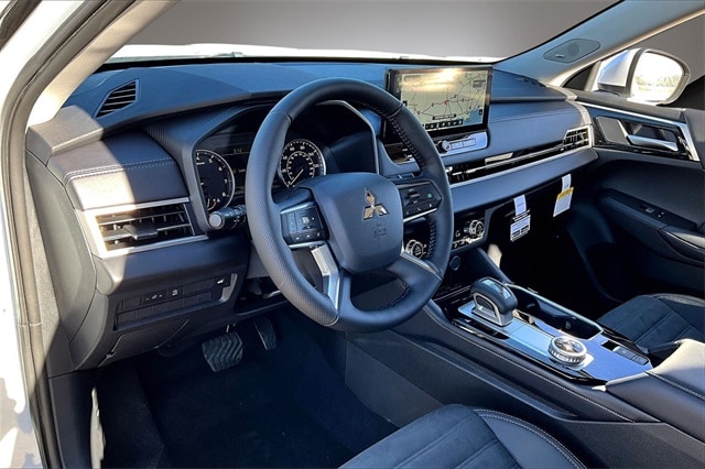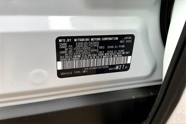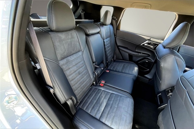 4WD, 3rd row seats: split-bench, 4-Wheel Disc Brakes, 8 Speakers, ABS brakes, Air Conditioning, Alloy wheels, AM/FM radio: SiriusXM, Android Auto & Apple CarPlay, Auto High-beam Headlights, Auto-dimming Rear-View mirror, Automatic temperature control, Brake assist, Bumpers: body-color, Compass, Delay-off headlights, Driver door bin, Driver vanity mirror, Dual front impact airbags, Dual front side impact airbags, Electronic Stability Control, Emergency communication system: Mitsubishi Connect w/ 24-month trial, Exterior Parking Camera Rear, Four wheel independent suspension, Front anti-roll bar, Front Bucket Seats, Front Center Armrest w/Storage, Front dual zone A/C, Front fog lights, Front reading lights, Fully automatic headlights, Headlight cleaning, Heated door mirrors, Heated Front Bucket Seats, Heated front seats, Illuminated entry, Knee airbag, Leather Shift Knob, Leather steering wheel, Low tire pressure warning, Navigation System, Occupant sensing airbag, Outside temperature display, Overhead airbag, Overhead console, Panic alarm, Passenger door bin, Passenger vanity mirror, Power door mirrors, Power driver seat, Power Liftgate, Power steering, Power windows, Radio data system, Radio: AM/FM 12.3" Navigation with Smartphone-Link, Rain sensing wipers, Rear anti-roll bar, Rear seat center armrest, Rear side impact airbag, Rear window defroster, Rear window wiper, Reclining 3rd row seat, Remote keyless entry, Security system, Speed control, Speed-Sensitive Wipers, Split folding rear seat, Spoiler, Steering wheel mounted audio controls, Synthetic Leather Seating Surfaces, Tachometer, Telescoping steering wheel, Tilt steering wheel, Traction control, Trip computer, Turn signal indicator mirrors, and Variably intermittent wipers.