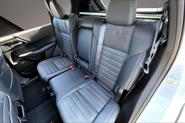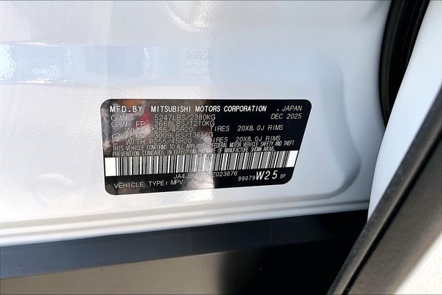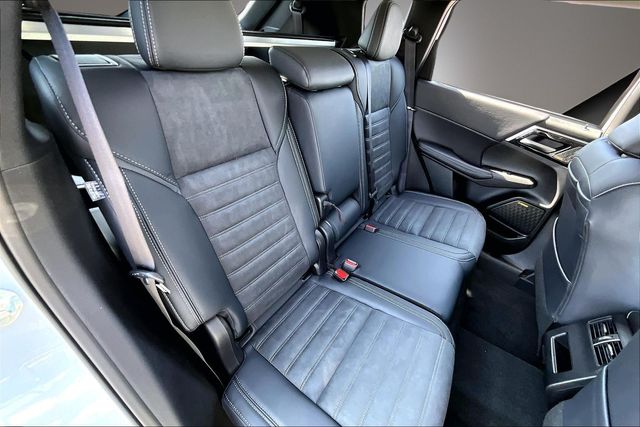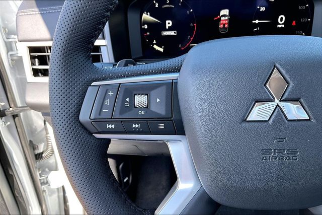 3rd row seats: split-bench, 4-Wheel Disc Brakes, 8 Speakers, ABS brakes, Air Conditioning, Alloy wheels, AM/FM radio: SiriusXM, Android Auto & Apple CarPlay, Auto High-beam Headlights, Auto-dimming Rear-View mirror, Automatic temperature control, Brake assist, Bumpers: body-color, Compass, Delay-off headlights, Driver door bin, Driver vanity mirror, Dual front impact airbags, Dual front side impact airbags, Electronic Stability Control, Emergency communication system: Mitsubishi Connect w/ 24-month trial, Exterior Parking Camera Rear, Four wheel independent suspension, Front anti-roll bar, Front Bucket Seats, Front Center Armrest w/Storage, Front dual zone A/C, Front fog lights, Front reading lights, Fully automatic headlights, Garage door transmitter: HomeLink, Heated door mirrors, Heated Front Bucket Seats, Heated front seats, Illuminated entry, Knee airbag, Leather Shift Knob, Leather steering wheel, Low tire pressure warning, Navigation System, Occupant sensing airbag, Outside temperature display, Overhead airbag, Overhead console, Panic alarm, Passenger door bin, Passenger vanity mirror, Power door mirrors, Power driver seat, Power Liftgate, Power steering, Power windows, Radio data system, Radio: AM/FM 12.3" Navigation with Smartphone-Link, Rain sensing wipers, Rear anti-roll bar, Rear seat center armrest, Rear side impact airbag, Rear window defroster, Rear window wiper, Reclining 3rd row seat, Remote keyless entry, Security system, Speed control, Speed-Sensitive Wipers, Split folding rear seat, Spoiler, Steering wheel mounted audio controls, Synthetic Leather Seating Surfaces, Tachometer, Telescoping steering wheel, Tilt steering wheel, Traction control, Trip computer, Turn signal indicator mirrors, Variably intermittent wipers, and Wheels: 20" Two-Tone Alloy.