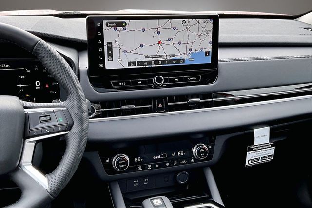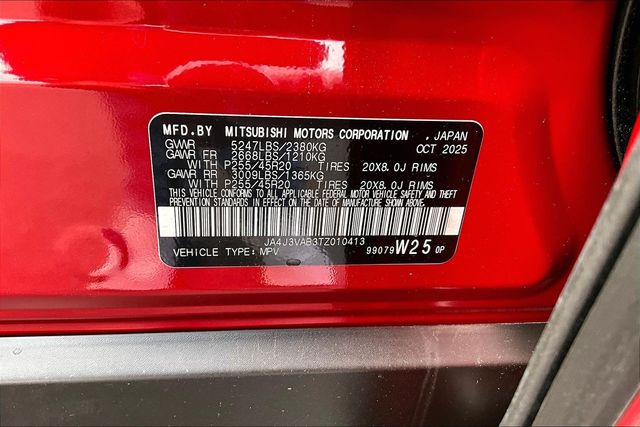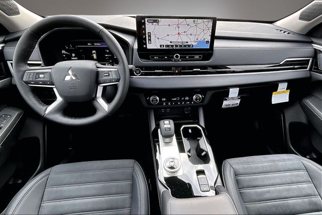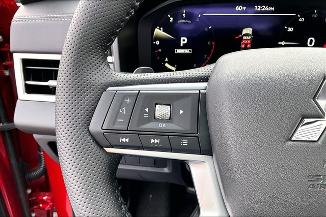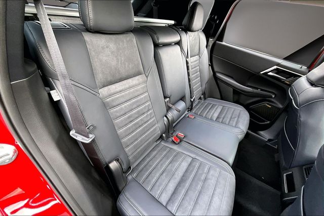 3rd row seats: split-bench, 4-Wheel Disc Brakes, 8 Speakers, ABS brakes, Air Conditioning, Alloy wheels, AM/FM radio: SiriusXM, Android Auto & Apple CarPlay, Auto High-beam Headlights, Auto-dimming Rear-View mirror, Automatic temperature control, Brake assist, Bumpers: body-color, Compass, Delay-off headlights, Driver door bin, Driver vanity mirror, Dual front impact airbags, Dual front side impact airbags, Electronic Stability Control, Emergency communication system: Mitsubishi Connect w/ 24-month trial, Exterior Parking Camera Rear, Four wheel independent suspension, Front anti-roll bar, Front Bucket Seats, Front Center Armrest w/Storage, Front dual zone A/C, Front fog lights, Front reading lights, Fully automatic headlights, Garage door transmitter: HomeLink, Heated door mirrors, Heated Front Bucket Seats, Heated front seats, Illuminated entry, Knee airbag, Leather Shift Knob, Leather steering wheel, Low tire pressure warning, Navigation System, Occupant sensing airbag, Outside temperature display, Overhead airbag, Overhead console, Panic alarm, Passenger door bin, Passenger vanity mirror, Power door mirrors, Power driver seat, Power Liftgate, Power steering, Power windows, Radio data system, Radio: AM/FM 12.3" Navigation with Smartphone-Link, Rain sensing wipers, Rear anti-roll bar, Rear seat center armrest, Rear side impact airbag, Rear window defroster, Rear window wiper, Reclining 3rd row seat, Remote keyless entry, Security system, Speed control, Speed-Sensitive Wipers, Split folding rear seat, Spoiler, Steering wheel mounted audio controls, Synthetic Leather Seating Surfaces, Tachometer, Telescoping steering wheel, Tilt steering wheel, Traction control, Trip computer, Turn signal indicator mirrors, Variably intermittent wipers, and Wheels: 20" Two-Tone Alloy.