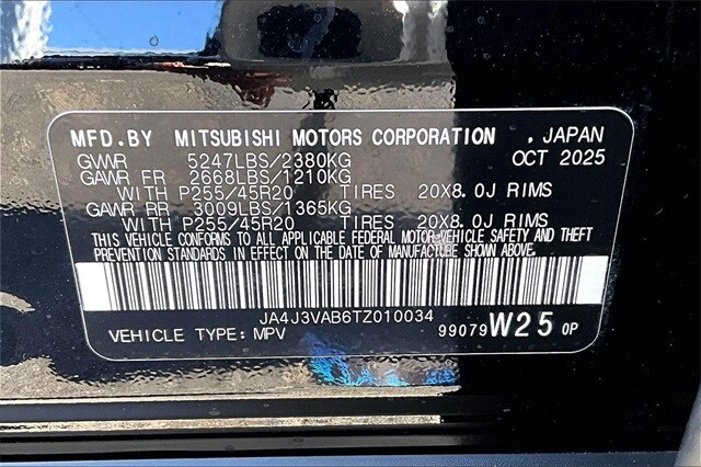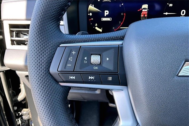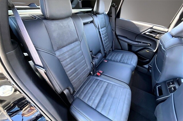 3rd row seats: split-bench, 4-Wheel Disc Brakes, 8 Speakers, ABS brakes, Air Conditioning, Alloy wheels, AM/FM radio: SiriusXM, Android Auto & Apple CarPlay, Auto High-beam Headlights, Auto-dimming Rear-View mirror, Automatic temperature control, Brake assist, Bumpers: body-color, Compass, Delay-off headlights, Driver door bin, Driver vanity mirror, Dual front impact airbags, Dual front side impact airbags, Electronic Stability Control, Emergency communication system: Mitsubishi Connect w/ 24-month trial, Exterior Parking Camera Rear, Four wheel independent suspension, Front anti-roll bar, Front Bucket Seats, Front Center Armrest w/Storage, Front dual zone A/C, Front fog lights, Front reading lights, Fully automatic headlights, Garage door transmitter: HomeLink, Heated door mirrors, Heated Front Bucket Seats, Heated front seats, Illuminated entry, Knee airbag, Leather Shift Knob, Leather steering wheel, Low tire pressure warning, Navigation System, Occupant sensing airbag, Outside temperature display, Overhead airbag, Overhead console, Panic alarm, Passenger door bin, Passenger vanity mirror, Power door mirrors, Power driver seat, Power Liftgate, Power steering, Power windows, Radio data system, Radio: AM/FM 12.3" Navigation with Smartphone-Link, Rain sensing wipers, Rear anti-roll bar, Rear seat center armrest, Rear side impact airbag, Rear window defroster, Rear window wiper, Reclining 3rd row seat, Remote keyless entry, Security system, Speed control, Speed-Sensitive Wipers, Split folding rear seat, Spoiler, Steering wheel mounted audio controls, Synthetic Leather Seating Surfaces, Tachometer, Telescoping steering wheel, Tilt steering wheel, Traction control, Trip computer, Turn signal indicator mirrors, Variably intermittent wipers, and Wheels: 20" Two-Tone Alloy.