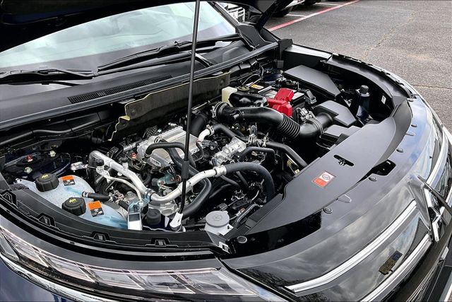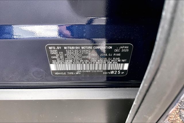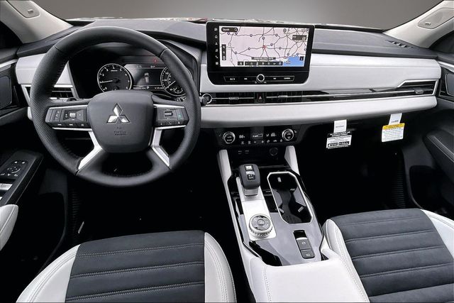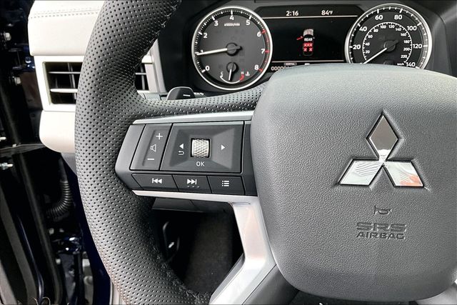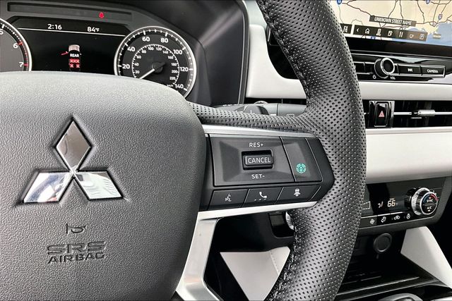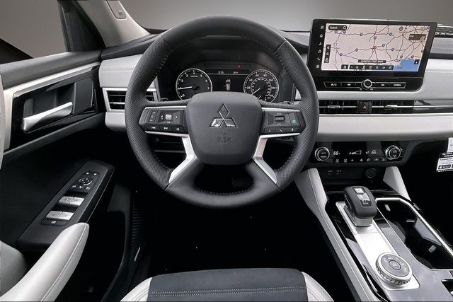 3rd row seats: split-bench, 4-Wheel Disc Brakes, 8 Speakers, ABS brakes, Air Conditioning, Alloy wheels, AM/FM radio: SiriusXM, Android Auto & Apple CarPlay, Auto High-beam Headlights, Auto-dimming Rear-View mirror, Automatic temperature control, Brake assist, Bumpers: body-color, Compass, Delay-off headlights, Driver door bin, Driver vanity mirror, Dual front impact airbags, Dual front side impact airbags, Electronic Stability Control, Emergency communication system: Mitsubishi Connect w/ 24-month trial, Exterior Parking Camera Rear, Four wheel independent suspension, Front anti-roll bar, Front Bucket Seats, Front Center Armrest w/Storage, Front dual zone A/C, Front fog lights, Front reading lights, Fully automatic headlights, Garage door transmitter: HomeLink, Heated door mirrors, Heated Front Bucket Seats, Heated front seats, Illuminated entry, Knee airbag, Leather Shift Knob, Leather steering wheel, Low tire pressure warning, Navigation System, Occupant sensing airbag, Outside temperature display, Overhead airbag, Overhead console, Panic alarm, Passenger door bin, Passenger vanity mirror, Power door mirrors, Power driver seat, Power Liftgate, Power steering, Power windows, Radio data system, Radio: AM/FM 12.3" Navigation with Smartphone-Link, Rain sensing wipers, Rear anti-roll bar, Rear seat center armrest, Rear side impact airbag, Rear window defroster, Rear window wiper, Reclining 3rd row seat, Remote keyless entry, Security system, Speed control, Speed-Sensitive Wipers, Split folding rear seat, Spoiler, Steering wheel mounted audio controls, Synthetic Leather Seating Surfaces, Tachometer, Telescoping steering wheel, Tilt steering wheel, Traction control, Trip computer, Turn signal indicator mirrors, Variably intermittent wipers, and Wheels: 20" Two-Tone Alloy.