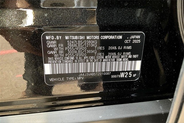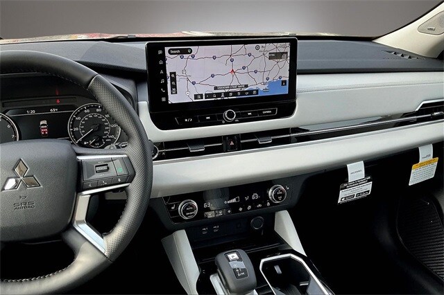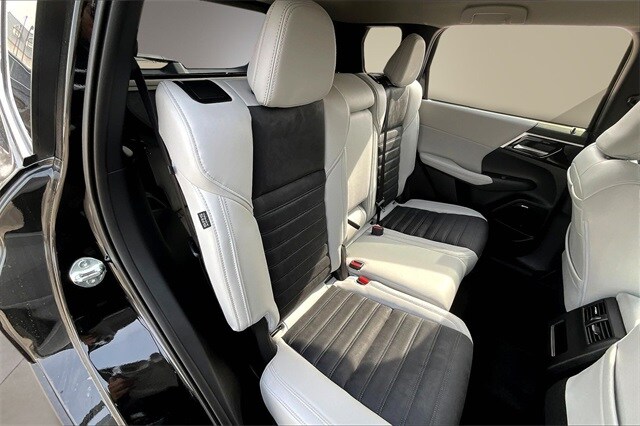 3rd row seats: split-bench, 4-Wheel Disc Brakes, 8 Speakers, ABS brakes, Air Conditioning, Alloy wheels, AM/FM radio: SiriusXM, Android Auto & Apple CarPlay, Auto High-beam Headlights, Auto-dimming Rear-View mirror, Automatic temperature control, Brake assist, Bumpers: body-color, Compass, Delay-off headlights, Driver door bin, Driver vanity mirror, Dual front impact airbags, Dual front side impact airbags, Electronic Stability Control, Emergency communication system: Mitsubishi Connect w/ 24-month trial, Exterior Parking Camera Rear, Four wheel independent suspension, Front anti-roll bar, Front Bucket Seats, Front Center Armrest w/Storage, Front dual zone A/C, Front fog lights, Front reading lights, Fully automatic headlights, Garage door transmitter: HomeLink, Heated door mirrors, Heated Front Bucket Seats, Heated front seats, Illuminated entry, Knee airbag, Leather Shift Knob, Leather steering wheel, Low tire pressure warning, Navigation System, Occupant sensing airbag, Outside temperature display, Overhead airbag, Overhead console, Panic alarm, Passenger door bin, Passenger vanity mirror, Power door mirrors, Power driver seat, Power Liftgate, Power steering, Power windows, Radio data system, Radio: AM/FM 12.3" Navigation with Smartphone-Link, Rain sensing wipers, Rear anti-roll bar, Rear seat center armrest, Rear side impact airbag, Rear window defroster, Rear window wiper, Reclining 3rd row seat, Remote keyless entry, Security system, Speed control, Speed-Sensitive Wipers, Split folding rear seat, Spoiler, Steering wheel mounted audio controls, Synthetic Leather Seating Surfaces, Tachometer, Telescoping steering wheel, Tilt steering wheel, Traction control, Trip computer, Turn signal indicator mirrors, Variably intermittent wipers, and Wheels: 20" Two-Tone Alloy.