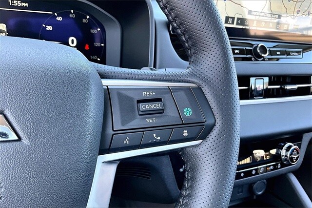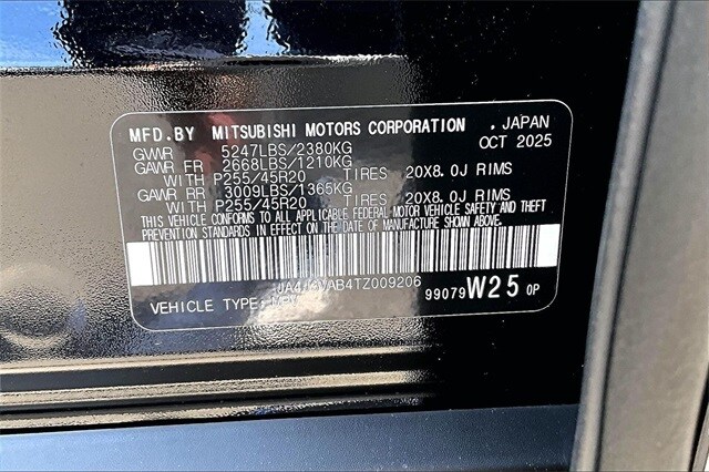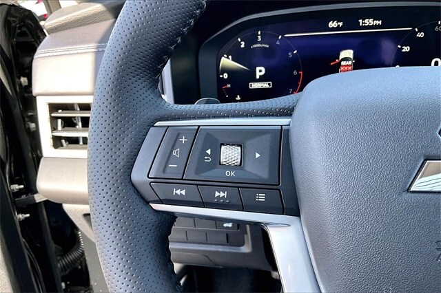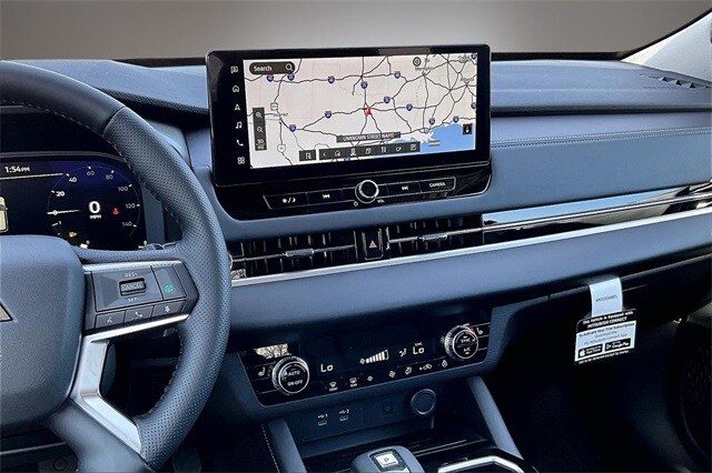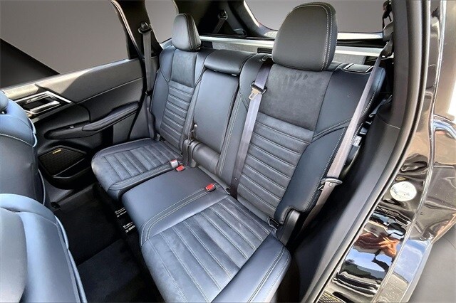 3rd row seats: split-bench, 4-Wheel Disc Brakes, 8 Speakers, ABS brakes, Air Conditioning, Alloy wheels, AM/FM radio: SiriusXM, Android Auto & Apple CarPlay, Auto High-beam Headlights, Auto-dimming Rear-View mirror, Automatic temperature control, Brake assist, Bumpers: body-color, Compass, Delay-off headlights, Driver door bin, Driver vanity mirror, Dual front impact airbags, Dual front side impact airbags, Electronic Stability Control, Emergency communication system: Mitsubishi Connect w/ 24-month trial, Exterior Parking Camera Rear, Four wheel independent suspension, Front anti-roll bar, Front Bucket Seats, Front Center Armrest w/Storage, Front dual zone A/C, Front fog lights, Front reading lights, Fully automatic headlights, Garage door transmitter: HomeLink, Heated door mirrors, Heated Front Bucket Seats, Heated front seats, Illuminated entry, Knee airbag, Leather Shift Knob, Leather steering wheel, Low tire pressure warning, Navigation System, Occupant sensing airbag, Outside temperature display, Overhead airbag, Overhead console, Panic alarm, Passenger door bin, Passenger vanity mirror, Power door mirrors, Power driver seat, Power Liftgate, Power steering, Power windows, Radio data system, Radio: AM/FM 12.3" Navigation with Smartphone-Link, Rain sensing wipers, Rear anti-roll bar, Rear seat center armrest, Rear side impact airbag, Rear window defroster, Rear window wiper, Reclining 3rd row seat, Remote keyless entry, Security system, Speed control, Speed-Sensitive Wipers, Split folding rear seat, Spoiler, Steering wheel mounted audio controls, Synthetic Leather Seating Surfaces, Tachometer, Telescoping steering wheel, Tilt steering wheel, Traction control, Trip computer, Turn signal indicator mirrors, Variably intermittent wipers, and Wheels: 20" Two-Tone Alloy.
