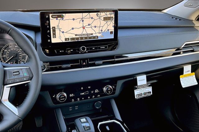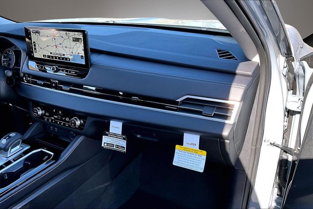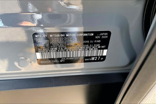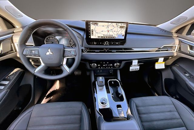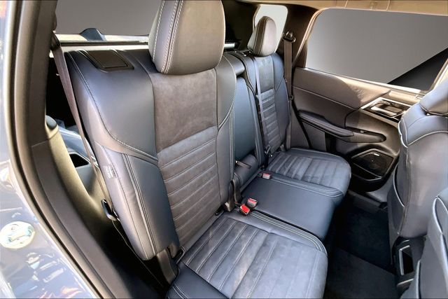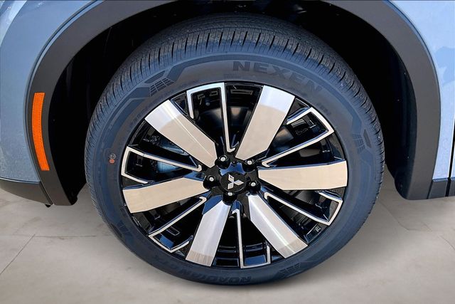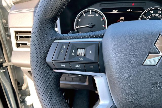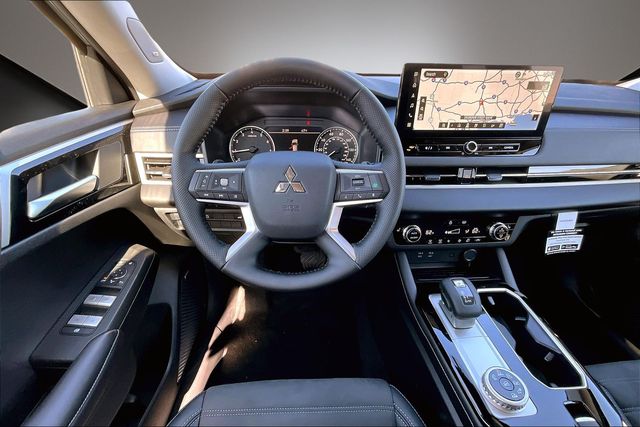 AWD, 3rd row seats: split-bench, 4-Wheel Disc Brakes, 8 Speakers, ABS brakes, Air Conditioning, Alloy wheels, AM/FM radio: SiriusXM, Android Auto & Apple CarPlay, Auto High-beam Headlights, Auto-dimming Rear-View mirror, Automatic temperature control, Brake assist, Bumpers: body-color, Compass, Delay-off headlights, Driver door bin, Driver vanity mirror, Dual front impact airbags, Dual front side impact airbags, Electronic Stability Control, Emergency communication system: Mitsubishi Connect w/ 24-month trial, Exterior Parking Camera Rear, Four wheel independent suspension, Front anti-roll bar, Front Bucket Seats, Front Center Armrest w/Storage, Front dual zone A/C, Front fog lights, Front reading lights, Fully automatic headlights, Headlight cleaning, Heated door mirrors, Heated Front Bucket Seats, Heated front seats, Illuminated entry, Knee airbag, Leather Shift Knob, Leather steering wheel, Low tire pressure warning, Navigation System, Occupant sensing airbag, Outside temperature display, Overhead airbag, Overhead console, Panic alarm, Passenger door bin, Passenger vanity mirror, Power door mirrors, Power driver seat, Power Liftgate, Power steering, Power windows, Radio data system, Radio: AM/FM 12.3" Navigation with Smartphone-Link, Rain sensing wipers, Rear anti-roll bar, Rear seat center armrest, Rear side impact airbag, Rear window defroster, Rear window wiper, Reclining 3rd row seat, Remote keyless entry, Security system, Speed control, Speed-Sensitive Wipers, Split folding rear seat, Spoiler, Steering wheel mounted audio controls, Synthetic Leather Seating Surfaces, Tachometer, Telescoping steering wheel, Tilt steering wheel, Traction control, Trip computer, Turn signal indicator mirrors, and Variably intermittent wipers.