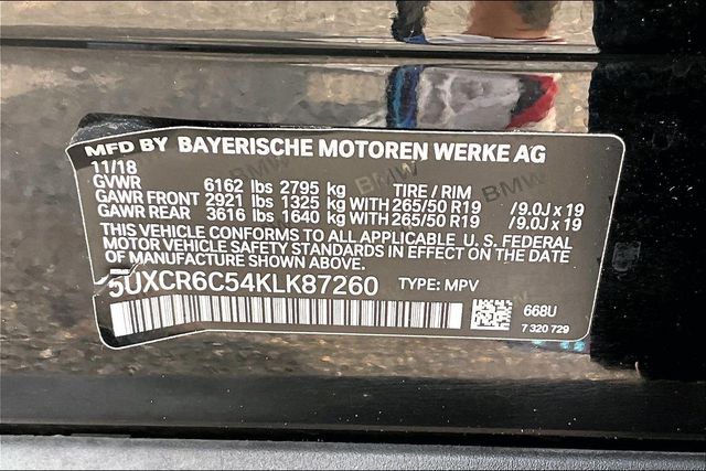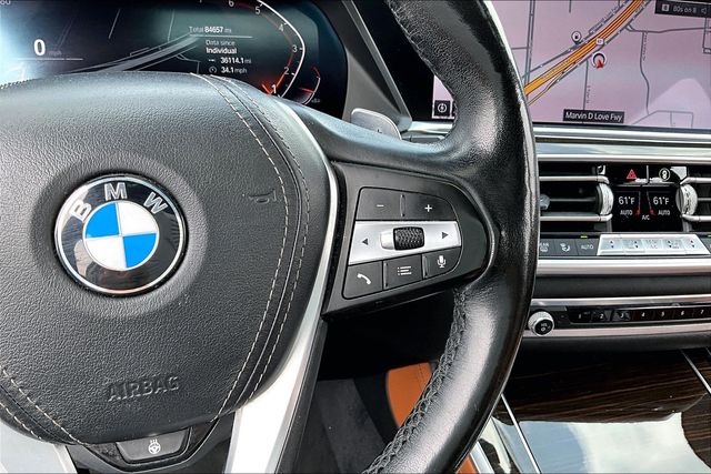 Convenience Package (4-Zone Automatic Climate Control, Comfort Access Keyless Entry, and SiriusXM Satellite Radio w/1 Year All Access), Parking Assistance Package (Parking Assistant Plus, Rear-View Camera, and Surround View w/3D View), Cognac Leather, 10 Speakers, 3.39 Axle Ratio, 4-Wheel Disc Brakes, ABS brakes, Air Conditioning, Alloy wheels, AM/FM radio, AM/FM Stereo, Apple CarPlay, Auto High-beam Headlights, Auto tilt-away steering wheel, Auto-dimming door mirrors, Auto-dimming Rear-View mirror, Automatic temperature control, Brake assist, Bumpers: body-color, Compass, Delay-off headlights, Driver door bin, Driver vanity mirror, Dual front impact airbags, Dual front side impact airbags, Electronic Stability Control, Emergency communication system: BMW Assist eCall, Exterior Parking Camera Rear, Four wheel independent suspension, Front anti-roll bar, Front Bucket Seats, Front Center Armrest, Front dual zone A/C, Front fog lights, Front reading lights, Fully automatic headlights, Garage door transmitter, Genuine wood console insert, Genuine wood dashboard insert, Genuine wood door panel insert, Gesture Control, Head restraints memory, Heated door mirrors, Heated Front Seats, Heated front seats, Heated Front Seats w/Armrests & Steering Wheel, Hi-Fi Sound System, Illuminated entry, Knee airbag, Leather Shift Knob, Leather steering wheel, Low tire pressure warning, Lumbar Support, Memory seat, Navigation System, Occupant sensing airbag, Outside temperature display, Overhead airbag, Panic alarm, Passenger door bin, Passenger vanity mirror, Power adjustable front head restraints, Power door mirrors, Power driver seat, Power Front Seats, Power moonroof, Power passenger seat, Power steering, Power windows, Radio data system, Rain sensing wipers, Rear air conditioning, Rear anti-roll bar, Rear reading lights, Rear seat center armrest, Rear window defroster, Rear window wiper, Remote keyless entry, Roof rack: rails only, Security system, SensaTec Upholstery, Speed control, Speed-sensing steering, Speed-Sensitive Wipers, Split folding rear seat, Spoiler, Sport Seats, Sport steering wheel, Steering wheel memory, Steering wheel mounted audio controls, Tachometer, Telescoping steering wheel, Tilt steering wheel, Traction control, Trip computer, Turn signal indicator mirrors, Variably intermittent wipers, and Wheels: 19" x 9" V-Spoke (Style 734) 20/26 City/Highway MPG