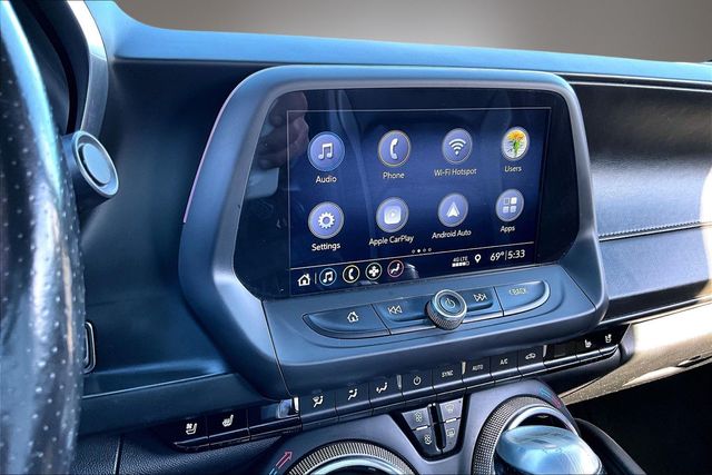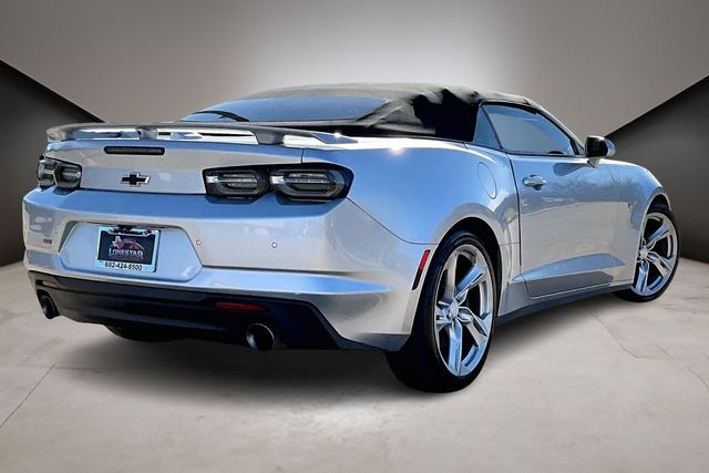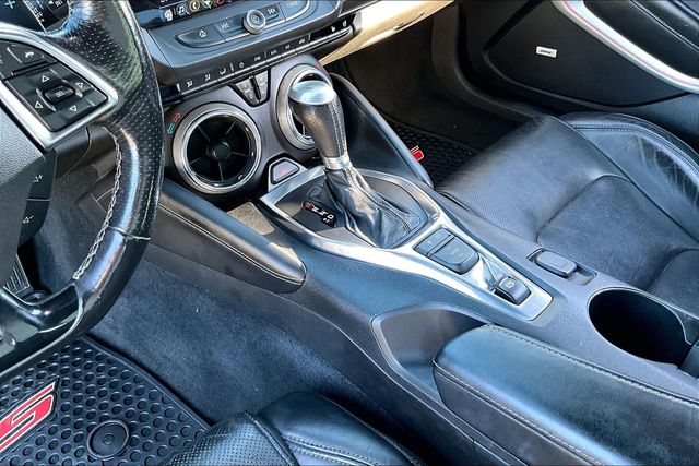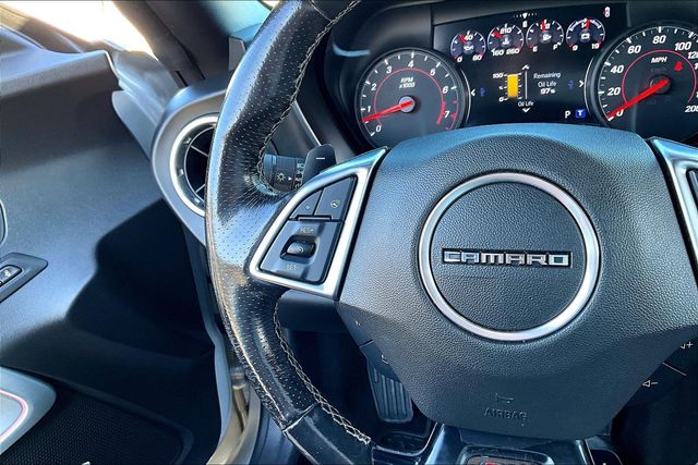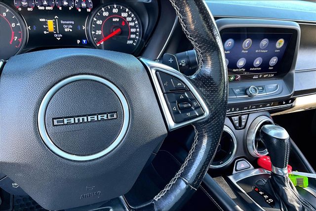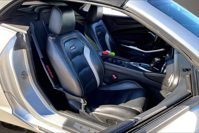 Preferred Equipment Group 2SS, 2.77 Rear Axle Ratio, 4-Wheel Disc Brakes, 6-Way Power Front Passenger Seat Adjuster, 7 Speakers, 8-Way Power Driver Seat Adjuster, ABS brakes, Air Conditioning, Alloy wheels, AM/FM radio: SiriusXM, Apple CarPlay/Android Auto, Auto-dimming door mirrors, Automatic temperature control, Bluetooth® For Phone, Bose Premium 7-Speaker Audio System Feature, Brake assist, Bumpers: body-color, Compass, Convertible roof lining, Delay-off headlights, Driver door bin, Driver vanity mirror, Dual front impact airbags, Dual front side impact airbags, Electronic Stability Control, Exterior Parking Camera Rear, Four wheel independent suspension, Front anti-roll bar, Front Bucket Seats, Front Center Armrest, Front dual zone A/C, Front License Plate Bracket, Front reading lights, Front Sport Bucket Seats, Fully automatic headlights, Glass rear window, Heads-Up Display, Heated door mirrors, Heated Driver & Front Passenger Seats, Heated front seats, Heated steering wheel, Illuminated entry, Knee airbag, Leather Shift Knob, Leather-Trimmed Seat Trim, Low tire pressure warning, Memory seat, Occupant sensing airbag, Outside temperature display, Paddle-Shift Manual Controls, Panic alarm, Passenger door bin, Passenger vanity mirror, Power convertible roof, Power door mirrors, Power driver seat, Power passenger seat, Power steering, Power windows, Premium audio system: Chevrolet Infotainment System, Radio data system, Radio: Chevrolet Infotainment 3 Plus System, Rear anti-roll bar, Rear window defroster, Remote keyless entry, Remote Vehicle Starter System, Security system, SiriusXM Radio, Speed control, Speed-sensing steering, Spoiler, Steering wheel mounted audio controls, Tachometer, Telescoping steering wheel, Tilt steering wheel, Traction control, Transmission Oil Cooler, Trip computer, Variably intermittent wipers, Ventilated Driver & Front Passenger Seats, Ventilated front seats, Voltmeter, and Wheels: 20" x 8.5" Fr & 20" x 9.5" Rr 5-Spoke Alum. 16/27 City/Highway MPG