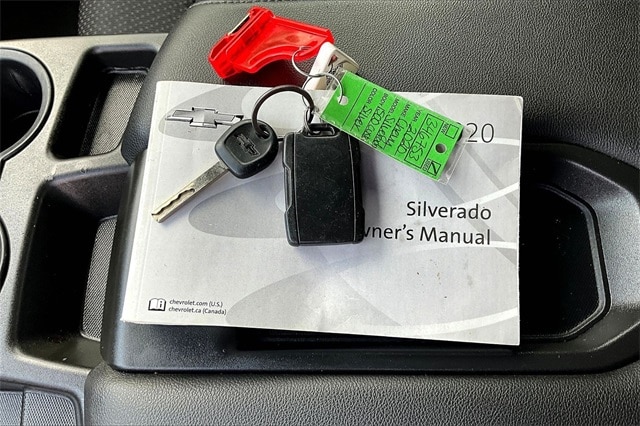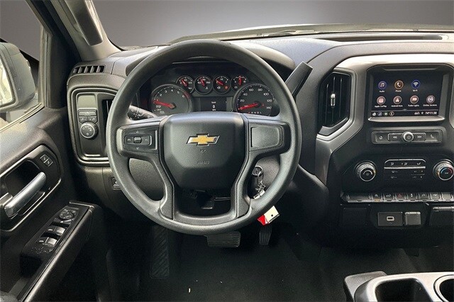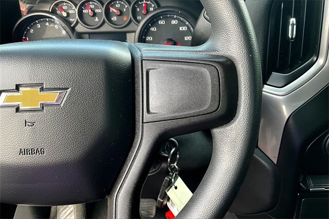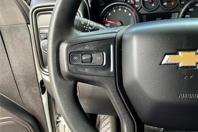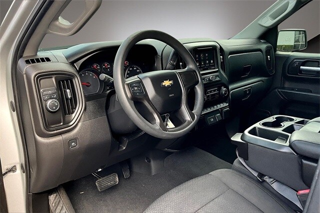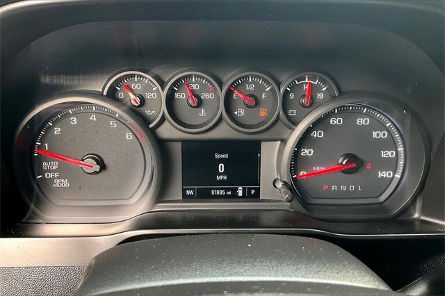 Custom Convenience Package (Electric Rear-Window Defogger, EZ Lift Power Lock & Release Tailgate, LED Cargo Area Lighting, Remote Vehicle Starter System, and Theft Deterrent System (Unauthorized Entry)), Custom Value Package, Infotainment Package (4G LTE Wi-Fi Hot Spot Capable, Chevrolet Connected Access Capable, Compass, OnStar & Chevrolet Connected Services Capable, and SiriusXM Radio), Preferred Equipment Group 1CX (170 Amps Alternator, 3.5" Diagonal Monochromatic Display, Bluetooth® For Phone, Body Color Grille, Color-Keyed Carpeting Floor Covering, Deep-Tinted Glass, Front Frame-Mounted Black Recovery Hooks, Front Rubberized Vinyl Floor Mats, Locking Tailgate, Manual Tilt-Wheel Steering Column, Power Door Locks, Power Front Windows w/Driver Express Up/Down, Power Front Windows w/Passenger Express Down, Power Rear Windows w/Express Down, Rear 60/40 Folding Bench Seat (Folds Up), Rear Rubberized-Vinyl Floor Mats, Remote Keyless Entry, and Steering Wheel Mounted Electronic Cruise Control), Trailering Package (Hitch Guidance), 8-Speed Automatic, Black Cloth, 120-Volt Bed Mounted Power Outlet, 120-Volt Instrument Panel Power Outlet, 220 Amps Alternator, 3.42 Rear Axle Ratio, 4-Wheel Disc Brakes, 40/20/40 Front Split Bench Seat, 6 Speakers, ABS brakes, Air Conditioning, Alloy wheels, Apple CarPlay/Android Auto, Automatic Stop/Start, Brake assist, Bumpers: body-color, Cloth Seat Trim, Delay-off headlights, Driver door bin, Driver vanity mirror, Dual front impact airbags, Dual front side impact airbags, Electronic Stability Control, Exterior Parking Camera Rear, Front 40/20/40 Split-Bench Seat, Front anti-roll bar, Front Center Armrest, Front License Plate Kit, Front reading lights, Front wheel independent suspension, Fully automatic headlights, Heated door mirrors, Heavy Duty Suspension, Heavy-Duty Rear Locking Differential, Illuminated entry, Low tire pressure warning, Occupant sensing airbag, Outside temperature display, Overhead airbag, Overhead console, Panic alarm, Passenger door bin, Passenger vanity mirror, Polished Exhaust Tip, Power door mirrors, Power steering, Power windows, Radio data system, Radio: Chevrolet Infotainment 3 System, Rear reading lights, Rear step bumper, Remote keyless entry, Single-Zone Manual/Semi-Automatic Air Conditioning, Speed control, Speed-sensing steering, Split folding rear seat, Tachometer, Tilt steering wheel, Traction control, Trip computer, Variably intermittent wipers, Voltmeter, and Wheels: 20" x 9" Bright Silver Painted Aluminum.