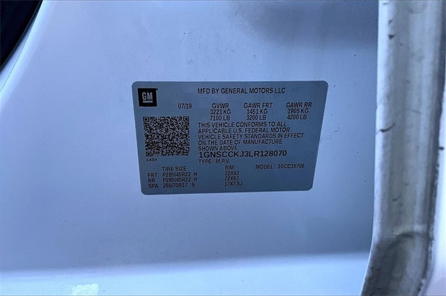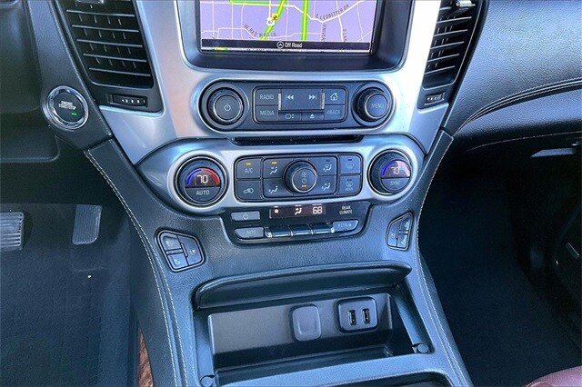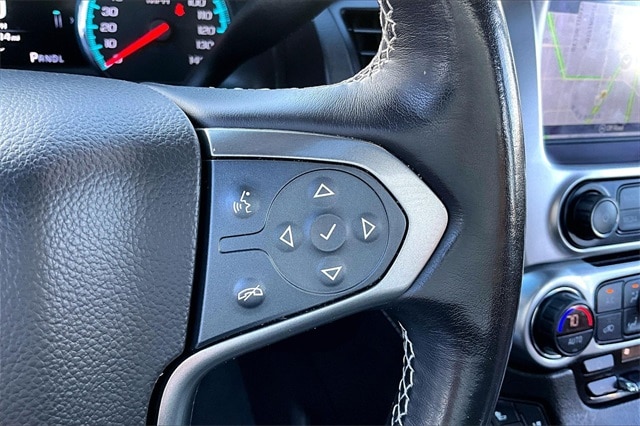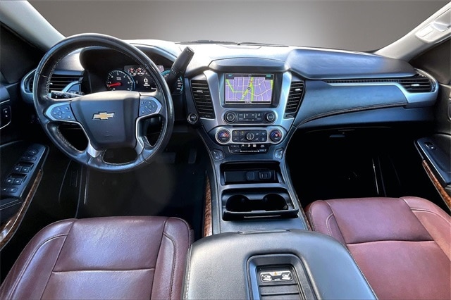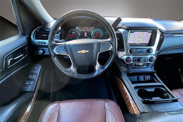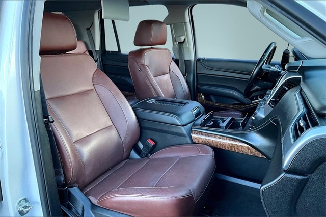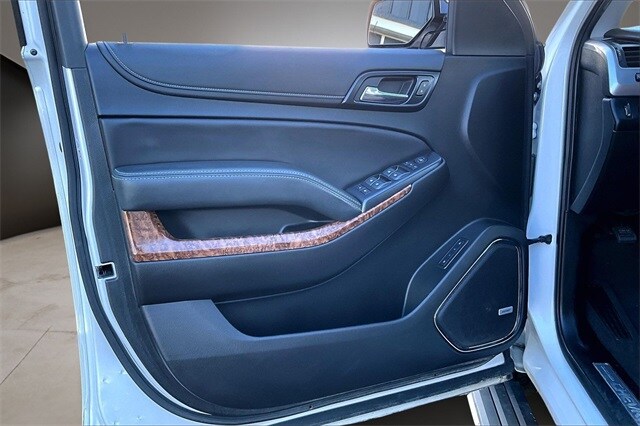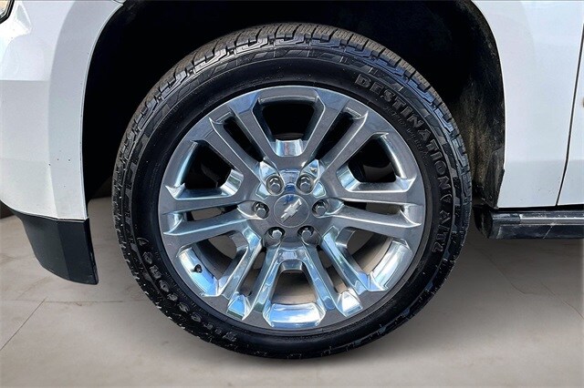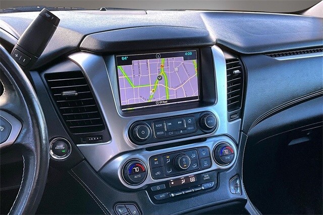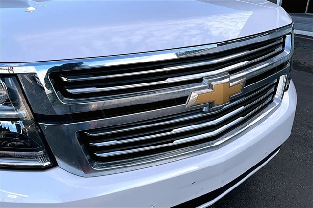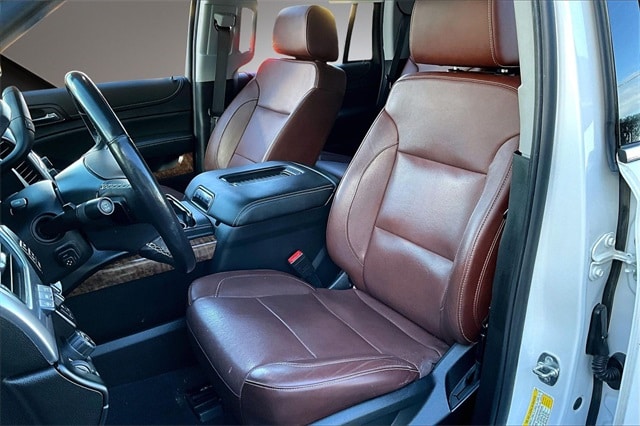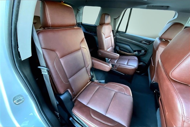 Enhanced Driver Alert Package (Y86) (Automatic Emergency Braking, Forward Collision Alert, IntelliBeam Headlamps, and Lane Keep Assist w/Lane Departure Warning), Magnetic Ride Control Suspension Package, Preferred Equipment Group 1LZ (1st & 2nd Row Color-Keyed Carpeted Floor Mats, 3rd Row 60/40 Power Fold Split-Bench, 4-Wheel Antilock Disc Brakes w/Brake Assist, 5 12-Volt Auxiliary Power Outlets, Auto-Dimming Inside Rear-View Mirror, Black Assist Steps w/Chrome Accent Strip, Bose Centerpoint Premium 10-Speaker Surround Sound, Cargo Net, Color-Keyed Carpeting Floor Covering, Driver Inboard & Front Passenger Airbags, Electronic Cruise Control w/Set & Resume Speed, Floor Console, Fog Lamps, Front & Rear Park Assist, Front Passenger 6-Way Power Seat Adjuster, Hands Free Power Liftgate, Heated & Ventilated Driver & Front Passenger Seats, Heated 2nd Row Outboard Seats, Heated Leather Wrapped Steering Wheel, Lane Change Alert w/Side Blind Zone Alert, Memory Settings, Passive Entry System, Power Release 2nd Row Bucket Seats, Power Tilt & Telescopic Steering Column, Power-Adjustable Accelerator & Brake Pedals, Power-Folding Heated Outside Mirrors, Push Button Keyless Start, Rear Cross Traffic Alert, Remote Keyless Entry, Remote Vehicle Start, Roof-Mounted Luggage Rack Side Rails, SiriusXM NavTraffic, SiriusXM Radio, Universal Home Remote, and Wireless Charging), Premier Plus Edition (170 Amp Alternator, 22" 6-Spoke Split Chrome (LPO) Wheels, Black Roof Rack Cross Rails, Collapsible Cargo Area Organizer (LPO), Enhanced Driver Information Center, Head-Up Display, Integrated Trailer Brake Controller, Polished Exhaust Tip, Power-Retractable Assist Steps, and Wheels: 22" x 9" Steel), Sun, Entertainment & Destinations Package (Power Sunroof and Rear Seat Blu-Ray/DVD Entertainment System), Jet Black/Mahogany Leather, 10 Speakers, 3rd row seats: split-bench, 4-Wheel Disc Brakes, ABS brakes, Adaptive suspension, Adjustable pedals, Air Conditioning, Alloy wheels, AM/FM radio: SiriusXM, Apple CarPlay/Android Auto, Auto High-beam Headlights, Auto-dimming door mirrors, Auto-dimming Rear-View mirror, Auto-leveling suspension, Automatic temperature control, Bluetooth for Phone, Bodyside moldings, Brake assist, Bumpers: body-color, CD player, Compass, Delay-off headlights, Driver door bin, Driver vanity mirror, Dual front impact airbags, Dual front side impact airbags, Electronic Stability Control, Emergency communication system: OnStar and Chevrolet connected services capable, Exterior Parking Camera Rear, Front anti-roll bar, Front Bucket Seats, Front Center Armrest, Front dual zone A/C, Front fog lights, Front Heated Reclining Bucket Seats, Front reading lights, Front wheel independent suspension, Fully automatic headlights, Garage door transmitter, HD Radio, Heated door mirrors, Heated front seats, Heated rear seats, Heated steering wheel, High-Intensity Discharge Headlights, Illuminated entry, Leather steering wheel, Low tire pressure warning, Memory seat, Navigation System, Occupant sensing airbag, Outside temperature display, Overhead airbag, Overhead console, Panic alarm, Passenger door bin, Passenger vanity mirror, Pedal memory, Perforated Leather-Appointed Seat Trim, Power door mirrors, Power driver seat, Power Liftgate, Power passenger seat, Power steering, Power windows, Premium audio system: Chevrolet MyLink, Radio: Chevrolet Infotainment AM/FM Stereo w/Nav, Rain sensing wipers, Rear air conditioning, Rear anti-roll bar, Rear reading lights, Rear window defroster, Rear window wiper, Remote keyless entry, Security system, Single-Slot CD/MP3 Player, Speed control, Speed-sensing steering, Split folding rear seat, Spoiler, Steering wheel memory, Steering wheel mounted audio controls, Tachometer, Telescoping steering wheel, Tilt steering wheel, Traction control, Trip computer, Turn signal indicator mirr