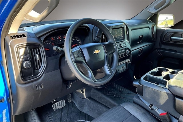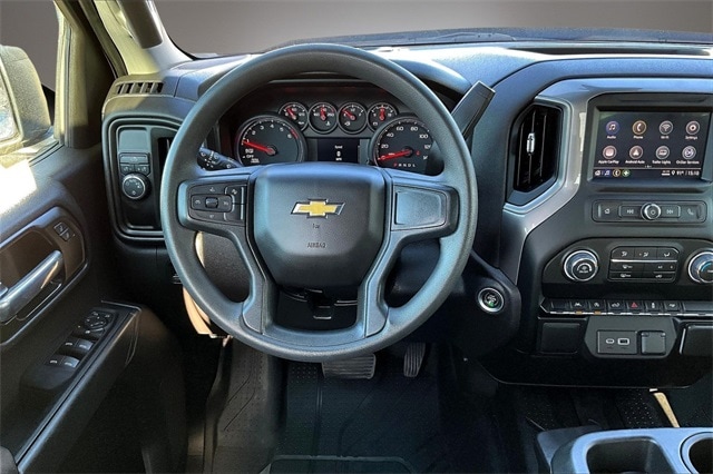 Custom Convenience Package (Electric Rear-Window Defogger, EZ Lift Power Lock & Release Tailgate, LED Cargo Area Lighting, and Remote Vehicle Starter System), Custom Value Package, High Capacity Suspension Package, Preferred Equipment Group 1CX (10-Way Power Driver Seat w/Lumbar, 120-Volt Bed Mounted Power Outlet, 120-Volt Instrument Panel Power Outlet, 3.5" Monochromatic Display Driver Info Center, Bluetooth® For Phone, Chevrolet Connected Access Capable, Color-Keyed Carpeting Floor Covering, Compass, Deep-Tinted Glass, Dual Rear USB Ports (Charge Only), Electrical Steering Column Lock, Electronic Cruise Control, Front Frame-Mounted Black Recovery Hooks, Front Rubberized Vinyl Floor Mats, HD Rear Vision Camera, Manual Tilt Wheel Steering Column, OnStar & Chevrolet Connected Services Capable, Power Front Windows w/Driver Express Up/Down, Power Front Windows w/Passenger Express Down, Power Rear Windows w/Express Down, Rear 60/40 Folding Bench Seat (Folds Up), Rear Rubberized-Vinyl Floor Mats, Remote Keyless Entry, SiriusXM Radio, Standard Tailgate, Theft Deterrent System (Unauthorized Entry), Wi-Fi Hot Spot Capable, and Wireless Phone Projection), Trailering Package (Hitch Guidance), 8-Speed Automatic, Black Cloth, 3.42 Rear Axle Ratio, 4-Wheel Disc Brakes, 40/20/40 Front Split-Bench Seat, 6 Speakers, 6-Speaker Audio System, ABS brakes, Air Conditioning, All-Weather Floor Liner (LPO), Alloy wheels, AM/FM radio: SiriusXM, Apple CarPlay/Android Auto, Auto High-beam Headlights, Auto-Locking Rear Differential, Automatic Emergency Braking, Brake assist, Bumpers: body-color, Chevytec Spray-On Black Bedliner, Cloth Seat Trim, Delay-off headlights, Driver door bin, Driver vanity mirror, Dual front impact airbags, Dual front side impact airbags, Electronic Stability Control, Following Distance Indicator, Forward Collision Alert, Front anti-roll bar, Front Black Bowtie Emblem (LPO), Front Center Armrest w/Storage, Front License Plate Kit, Front Pedestrian Braking, Front reading lights, Front wheel independent suspension, Fully automatic headlights, Heated door mirrors, Illuminated entry, IntelliBeam Automatic High Beam On/Off, Lane Keep Assist w/Lane Departure Warning, Low tire pressure warning, Not Equipped w/Rear USB Ports, Occupant sensing airbag, Outside temperature display, Overhead airbag, Overhead console, Panic alarm, Passenger door bin, Passenger vanity mirror, Power door mirrors, Power driver seat, Power steering, Power windows, Premium audio system: Chevrolet Infotainment 3, Radio data system, Radio: Chevrolet Infotainment 3 System, Rear reading lights, Rear step bumper, Rear window defroster, Remote keyless entry, Security system, Speed control, Speed-sensing steering, Split folding rear seat, Tachometer, Tilt steering wheel, Traction control, Trip computer, Variably intermittent wipers, Voltmeter, Wheel Locks (Set of 4) (LPO), and Wheels: 20" x 9" Bright Silver Painted Aluminum.