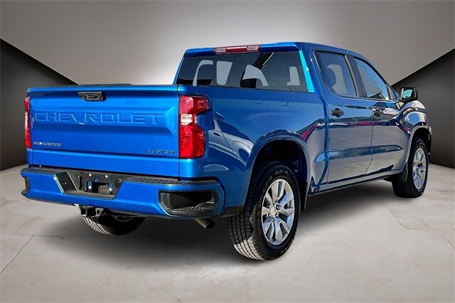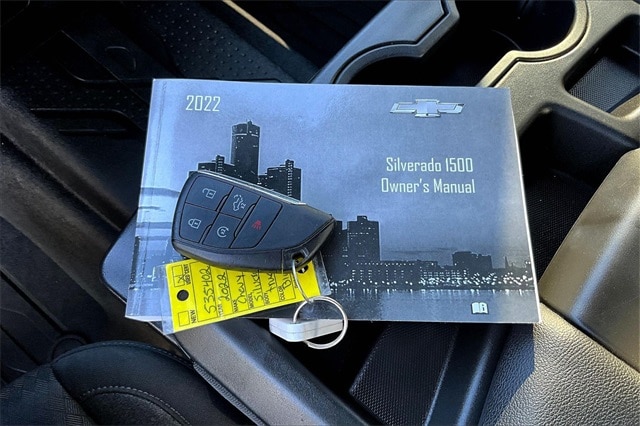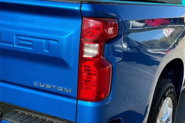 Glacier Blue Metallic 2022 Chevrolet Silverado 1500 Custom RWD 8-Speed Automatic 2.7L Turbo 8-Speed Automatic, Black Cloth.