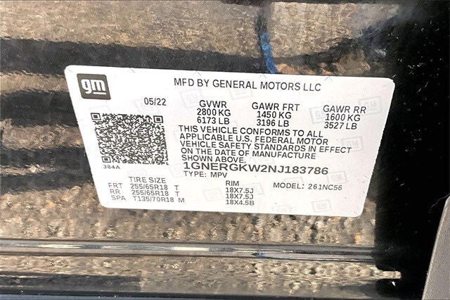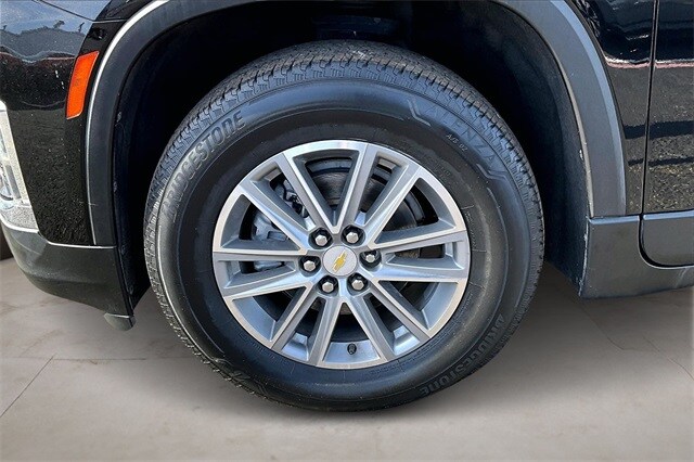 Convenience & Driver Confidence Package (4.2" Multi-Color Enhanced Driver Instrument Display, Heated Driver & Front Passenger Seats, Radio: Chevrolet Infotainment 3 Plus System, Rear Power Liftgate, Remote Start, SiriusXM w/360L, and Universal Home Remote), Front License Plate Bracket Mounting Package, Preferred Equipment Group 1LT (Rear Park Assist w/Audible Warning), 2-Way Manual Front Passenger Seat Adjuster, 3.49 Axle Ratio, 3rd row seats: split-bench, 4-Wheel Disc Brakes, 6 Speakers, 6-Speaker Audio System Feature, 8-Way Power Driver Seat Adjuster, ABS brakes, Air Conditioning, Alloy wheels, AM/FM radio: SiriusXM, Apple CarPlay/Android Auto, Auto High-beam Headlights, Automatic temperature control, Black Roof Rails, Brake assist, Bumpers: body-color, Compass, Delay-off headlights, Driver door bin, Driver vanity mirror, Dual front impact airbags, Dual front side impact airbags, Electronic Stability Control, Emergency communication system: OnStar Guidance, Exterior Parking Camera Rear, Four wheel independent suspension, Front anti-roll bar, Front Bucket Seats, Front Center Armrest, Front dual zone A/C, Front reading lights, Fully automatic headlights, Heated door mirrors, Illuminated entry, Leather steering wheel, Low tire pressure warning, Not Equipped w/Rear Park Assist, Occupant sensing airbag, Outside temperature display, Overhead airbag, Overhead console, Panic alarm, Passenger door bin, Passenger vanity mirror, Power door mirrors, Power Driver Lumbar Control, Power driver seat, Power steering, Power windows, Premium Cloth Seat Trim, Radio data system, Radio: Chevrolet Infotainment System AM/FM Stereo, Rear air conditioning, Rear anti-roll bar, Rear reading lights, Rear window defroster, Rear window wiper, Remote keyless entry, Roof rack: rails only, Security system, SiriusXM Radio, Speed control, Speed-sensing steering, Spoiler, Steering wheel mounted audio controls, Tachometer, Telescoping steering wheel, Tilt steering wheel, Traction control, Trip computer, Turn signal indicator mirrors, Variably intermittent wipers, Voltmeter, and Wheels: 18" Bright Silver-Painted Aluminum. Recent Arrival! 18/27 City/Highway MPG