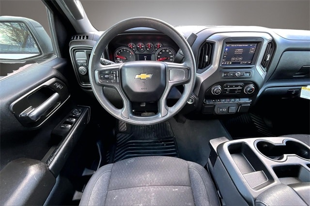 Custom Convenience Package (Electric Rear-Window Defogger, EZ Lift Power Lock & Release Tailgate, LED Cargo Area Lighting, Remote Vehicle Starter System, and Theft Deterrent System (Unauthorized Entry)), Custom Value Package, Dark Essentials Package (LPO) (Black Name Plates (LPO)), High Capacity Suspension Package, Preferred Equipment Group 1CX (10-Way Power Driver Seat w/Lumbar, 120-Volt Bed Mounted Power Outlet, 120-Volt Interior Power Outlet, 3.5" Monochromatic Display Driver Info Center, Bluetooth® For Phone, Chevrolet Connected Access Capable, Color-Keyed Carpeting Floor Covering, Deep-Tinted Glass, Dual Rear USB Ports (Charge Only), Electrical Steering Column Lock, Electronic Cruise Control, Front Frame-Mounted Black Recovery Hooks, Front Rubberized Vinyl Floor Mats, HD Rear Vision Camera, Manual Tilt Wheel Steering Column, OnStar & Chevrolet Connected Services Capable, Power Front Windows w/Driver Express Up/Down, Power Front Windows w/Passenger Express Down, Power Rear Windows w/Express Down, Rear 60/40 Folding Bench Seat (Folds Up), Rear Rubberized-Vinyl Floor Mats, Remote Keyless Entry, SiriusXM Radio, Standard Tailgate, and Wi-Fi Hot Spot Capable), Trailering Package (Hitch Guidance), 8-Speed Automatic, Black Cloth, 3.42 Rear Axle Ratio, 4-Wheel Disc Brakes, 40/20/40 Front Split-Bench Seat, 6 Speakers, 6-Speaker Audio System, ABS brakes, Air Conditioning, Alloy wheels, AM/FM radio: SiriusXM, Auto High-beam Headlights, Automatic Emergency Braking, Black Tailgate CHEVROLET Lettering (LPO), Brake assist, Bumpers: body-color, Cloth Seat Trim, Compass, Delay-off headlights, Driver door bin, Driver vanity mirror, Dual front impact airbags, Dual front side impact airbags, Electronic Stability Control, Following Distance Indicator, Forward Collision Alert, Front anti-roll bar, Front Black Bowtie Emblem (LPO), Front Center Armrest w/Storage, Front License Plate Kit, Front Pedestrian Braking, Front reading lights, Front wheel independent suspension, Fully automatic headlights, Heated door mirrors, Illuminated entry, IntelliBeam Automatic High Beam On/Off, Lane Keep Assist w/Lane Departure Warning, Low tire pressure warning, Occupant sensing airbag, Outside temperature display, Overhead airbag, Overhead console, Panic alarm, Passenger door bin, Passenger vanity mirror, Power door mirrors, Power driver seat, Power steering, Power windows, Premium audio system: Chevrolet Infotainment 3, Radio data system, Radio: Chevrolet Infotainment 3 System, Rear reading lights, Rear step bumper, Rear window defroster, Remote keyless entry, Security system, Single Outlet Exhaust, Speed control, Speed-sensing steering, Split folding rear seat, Tachometer, Tilt steering wheel, Traction control, Trip computer, Variably intermittent wipers, Voltmeter, Wheels: 20" x 9" Bright Silver Painted Aluminum, and Wheels: 20" x 9" High Gloss Black Painted Alum.