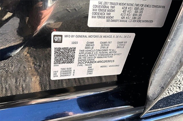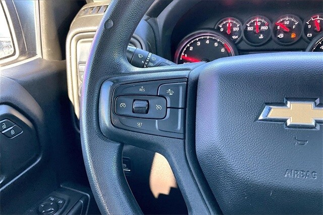 Custom Convenience Package (Electric Rear-Window Defogger, EZ Lift Power Lock & Release Tailgate, LED Cargo Area Lighting, Remote Vehicle Starter System, and Theft Deterrent System (Unauthorized Entry)), Custom Value Package, Dark Essentials Package (LPO) (Black Name Plates (LPO)), High Capacity Suspension Package, Preferred Equipment Group 1CX (10-Way Power Driver Seat w/Lumbar, 120-Volt Bed Mounted Power Outlet, 120-Volt Interior Power Outlet, 3.5" Monochromatic Display Driver Info Center, Bluetooth® For Phone, Chevrolet Connected Access Capable, Color-Keyed Carpeting Floor Covering, Deep-Tinted Glass, Dual Rear USB Ports (Charge Only), Electrical Steering Column Lock, Electronic Cruise Control, Front Frame-Mounted Black Recovery Hooks, Front Rubberized Vinyl Floor Mats, HD Rear Vision Camera, Manual Tilt Wheel Steering Column, OnStar & Chevrolet Connected Services Capable, Power Front Windows w/Driver Express Up/Down, Power Front Windows w/Passenger Express Down, Power Rear Windows w/Express Down, Rear 60/40 Folding Bench Seat (Folds Up), Rear Rubberized-Vinyl Floor Mats, Remote Keyless Entry, SiriusXM Radio, Standard Tailgate, and Wi-Fi Hot Spot Capable), Trailering Package (Hitch Guidance), 8-Speed Automatic, Black Cloth, 3.42 Rear Axle Ratio, 4-Wheel Disc Brakes, 40/20/40 Front Split-Bench Seat, 6 Speakers, 6-Speaker Audio System, ABS brakes, Air Conditioning, Alloy wheels, AM/FM radio: SiriusXM, Auto High-beam Headlights, Automatic Emergency Braking, Brake assist, Bumpers: body-color, Cloth Seat Trim, Compass, Delay-off headlights, Driver door bin, Driver vanity mirror, Dual front impact airbags, Dual front side impact airbags, Electronic Stability Control, Following Distance Indicator, Forward Collision Alert, Front anti-roll bar, Front Black Bowtie Emblem (LPO), Front Center Armrest w/Storage, Front License Plate Kit, Front Pedestrian Braking, Front reading lights, Front wheel independent suspension, Fully automatic headlights, Heated door mirrors, Illuminated entry, IntelliBeam Automatic High Beam On/Off, Lane Keep Assist w/Lane Departure Warning, Low tire pressure warning, Multi-Flex Tailgate, Occupant sensing airbag, Outside temperature display, Overhead airbag, Overhead console, Panic alarm, Passenger door bin, Passenger vanity mirror, Power door mirrors, Power driver seat, Power steering, Power windows, Premium audio system: Chevrolet Infotainment 3, Radio data system, Radio: Chevrolet Infotainment 3 System, Rear reading lights, Rear step bumper, Rear Wheelhouse Liners, Rear window defroster, Remote keyless entry, Security system, Single Outlet Exhaust, Speed control, Speed-sensing steering, Split folding rear seat, Tachometer, Tilt steering wheel, Traction control, Trip computer, Underseat Storage (LPO), Variably intermittent wipers, Voltmeter, Wheels: 20" x 9" Bright Silver Painted Aluminum, and Wheels: 20" x 9" High Gloss Black Painted Alum.