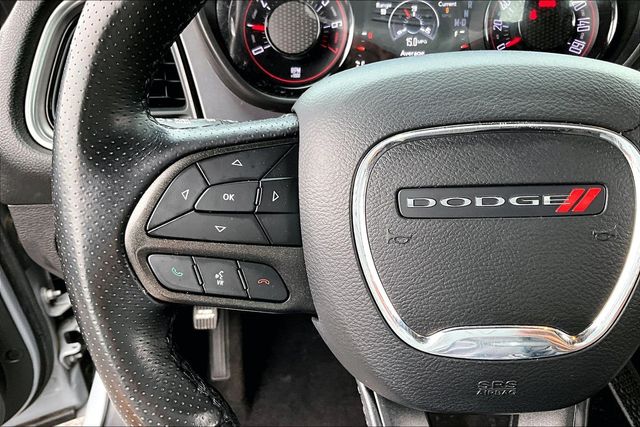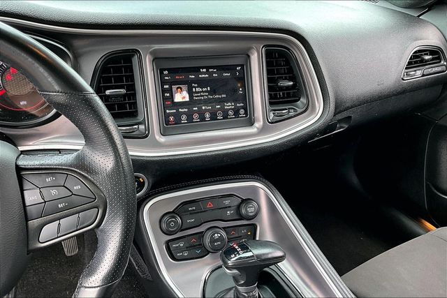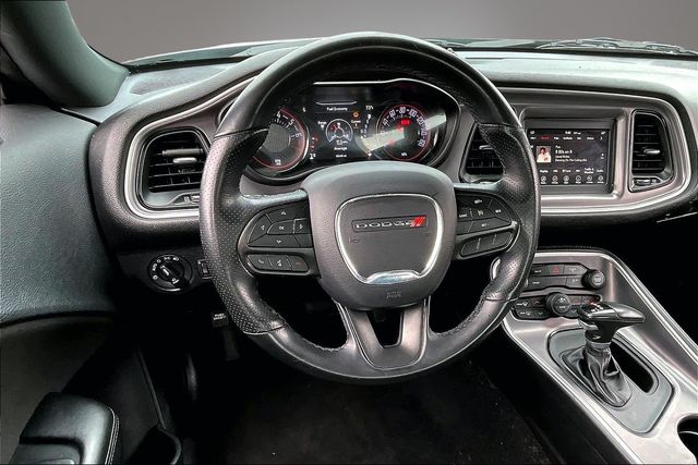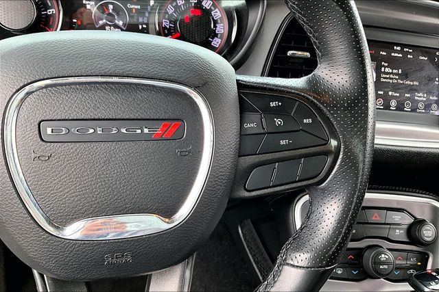 Blacktop Package (Black Fuel Filler Door, Black Grille w/Bezel, Challenger Blacktop Grille Badge, Gloss Black I/P Cluster Trim Rings, Leather Performance Steering Wheel, Rear Black Spoiler, Satin Black Dodge Tail Lamp Badge, and Wheels: 20" x 8.0" Black Noise Painted), Quick Order Package 2EA, 4-Wheel Disc Brakes, 6 Speakers, ABS brakes, Air Conditioning, Alloy wheels, AM/FM radio, Anti-whiplash front head restraints, Apple CarPlay, Apple CarPlay/Android Auto, Auto-dimming Rear-View mirror, Automatic temperature control, Brake assist, Bumpers: body-color, Compass, Delay-off headlights, Driver door bin, Driver vanity mirror, Dual front impact airbags, Dual front side impact airbags, Electronic Stability Control, For More Info, Call 800-643-2112, Four wheel independent suspension, Front anti-roll bar, Front Bucket Seats, Front Center Armrest, Front dual zone A/C, Front License Plate Bracket, Front reading lights, Fully automatic headlights, Google Android Auto, GPS Antenna Input, Heated door mirrors, Houndstooth Cloth Sport Seat, Illuminated entry, Integrated Center Stack Radio, Integrated Voice Command w/Bluetooth, Leather Shift Knob, Low tire pressure warning, Media Hub (2 USB, AUX), Outside temperature display, Overhead airbag, Overhead console, Panic alarm, ParkView Rear Back-Up Camera, Passenger door bin, Passenger vanity mirror, Power door mirrors, Power driver seat, Power steering, Power windows, Radio data system, Radio: Uconnect 4 w/7" Display, Rear anti-roll bar, Rear reading lights, Rear seat center armrest, Rear window defroster, Remote keyless entry, Security system, SiriusXM Radio Service, SiriusXM Satellite Radio, Speed control, Speed-sensing steering, Split folding rear seat, Spoiler, Steering wheel mounted audio controls, Tachometer, Telescoping steering wheel, Tilt steering wheel, Traction control, Trip computer, USB Host Flip, Variably intermittent wipers, and Wheels: 18" x 7.5" Cast Aluminum. Odometer is 10213 miles below market average! 19/30 City/Highway MPG