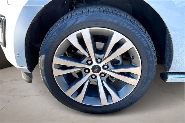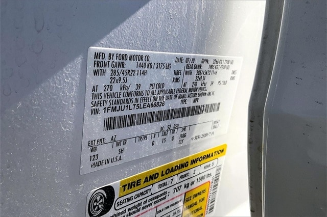 Equipment Group 600A, 12 Speakers, 2nd Row Captain's Chairs w/Armrests, 3.31 Axle Ratio, 3rd row seats: split-bench, 4-Wheel Disc Brakes, ABS brakes, Adaptive suspension, Adjustable pedals, Air Conditioning, Alloy wheels, AM/FM radio: SiriusXM, Auto High-beam Headlights, Auto-dimming door mirrors, Auto-dimming Rear-View mirror, Automatic temperature control, Brake assist, Bumpers: body-color, Compass, Delay-off headlights, Driver door bin, Driver vanity mirror, Dual front impact airbags, Dual front side impact airbags, Electronic Stability Control, Emergency communication system: SYNC 3 911 Assist, Exterior Parking Camera Rear, Four wheel independent suspension, Front anti-roll bar, Front Bucket Seats, Front Center Armrest, Front dual zone A/C, Front fog lights, Front reading lights, Fully automatic headlights, Garage door transmitter, Genuine wood console insert, Genuine wood dashboard insert, Genuine wood door panel insert, Heated door mirrors, Heated front seats, Heated rear seats, Heated steering wheel, Heated/Cooled Leather Front Captain's Chairs, Illuminated entry, Leather steering wheel, Low tire pressure warning, Memory seat, Navigation System, Occupant sensing airbag, Outside temperature display, Overhead airbag, Overhead console, Panic alarm, Passenger door bin, Passenger vanity mirror, Pedal memory, Power door mirrors, Power driver seat, Power Liftgate, Power moonroof, Power passenger seat, Power steering, Power windows, Radio data system, Radio: B&O Sound System by Bang & Olufsen, Rain sensing wipers, Rear air conditioning, Rear anti-roll bar, Rear audio controls, Rear reading lights, Rear window defroster, Rear window wiper, Reclining 3rd row seat, Remote keyless entry, Reversible Cargo Mat, Roof rack, Security system, SiriusXM Satellite Radio, Speed control, Speed-sensing steering, Speed-Sensitive Wipers, Split folding rear seat, Steering wheel memory, Steering wheel mounted audio controls, SYNC 3 Communications & Entertainment System, Tachometer, Telescoping steering wheel, Tilt steering wheel, Traction control, Trip computer, Turn signal indicator mirrors, Variably intermittent wipers, Ventilated front seats, Voltmeter, and Wheels: 22" 6-Spoke Painted Machined-Face Aluminum.
