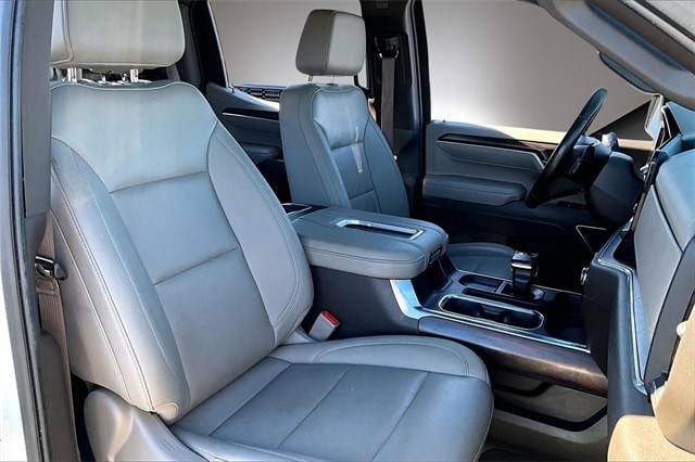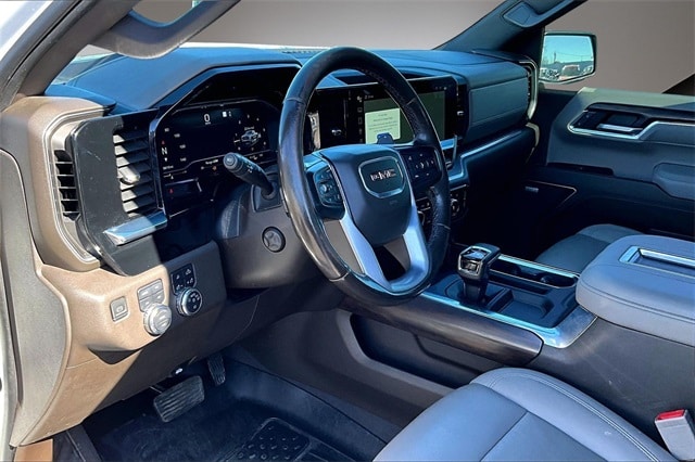 High Capacity Suspension Package, Preferred Equipment Group 4SA (120-Volt Bed Mounted Power Outlet, 120-Volt Instrument Panel Power Outlet, 170 Amp Alternator, 2 Charge/Data USB Ports, 2 Type-C Charge-Only Rear USB Ports, 6-Speaker Audio System Feature, Auto-Locking Rear Differential, Auxiliary External Transmission Oil Cooler, Chrome Header & Chrome Grille Insert Bars, Color-Keyed Carpeting Floor Covering, Compass, Deep-Tinted Glass, Electric Rear-Window Defogger, Electrical Steering Column Lock, Front Frame-Mounted Black Recovery Hooks, Front Rainsensing Wipers, GMC Connected Access Capable, HD Rear Vision Camera, Heated Steering Wheel, Keyless Open & Start, LED Cargo Area Lighting, Manual Tilt-Wheel & Telescoping Steering Column, OnStar & GMC Connected Services Capable, Perimeter Lighting, Power Door Locks, Power Front Passenger Windows w/Express Up/Down, Power Front Windows w/Driver Express Up/Down, Power Rear Windows w/Express Down, Push Button Start, Rear Wheelhouse Liners, Remote Vehicle Starter System, SiriusXM w/360L, Steering Wheel Audio Controls, Theft Deterrent System (Unauthorized Entry), Wi-Fi Hotspot Capable, and Wireless Phone Projection), ProGrade Trailering System (Hitch Guidance w/Hitch View, In-Vehicle Trailering App, and Integrated Trailer Brake Controller), Sierra Safety Plus Package (HD Surround Vision, Rear Cross Traffic Braking, Rear Pedestrian Detection, Safety Alert Seat, Trailer Camera Provisions, Trailer Side Blind Zone Alert, and Ultrasonic Front & Rear Park Assist), SLT Convenience Package (2 Charge/Data USB Ports Inside Center Console, Electronic Precision Shift, Floor-Mounted Center Console, Front Bucket Seats, Power Rake & Telescoping Steering Column, Premium Bose 7-Speaker Sound System, Ventilated Driver & Front Passenger Seats, and Wireless Charging), SLT Preferred Package (Adaptive Cruise Control, Heated 2nd Row Outboard Seats, Power Sliding Rear Window w/Rear Defogger, and Universal Home Remote), SLT Premium Plus Package (20" Polished Aluminum Wheels, Chrome Wheel To Wheel Assist Steps, and Spray-On Pickup Bed Liner w/GMC Logo), Standard Suspension Package, Trailering Package (Hitch Guidance), X31 Off-Road Package (Dual Exhaust System, Heavy-Duty Air Filter, Hill Descent Control, Off-Road Suspension, and X31 Hard Badge), 10-Speed Automatic, 4WD, Dark Walnut/Slate Leather, 10-Way Power Driver Seat Adjuster w/Lumbar, 10-Way Power Passenger Seat Adjuster w/Lumbar, 3.23 Rear Axle Ratio, 4-Wheel Disc Brakes, 6 Speakers, ABS brakes, Air Conditioning, Alloy wheels, AM/FM radio: SiriusXM with 360L, Apple CarPlay/Android Auto, Auto High-beam Headlights, Auto-dimming door mirrors, Auto-dimming Rear-View mirror, Automatic Emergency Braking, Automatic temperature control, Brake assist, Buckle to Drive, Bumpers: chrome, Delay-off headlights, Driver door bin, Driver Memory, Driver vanity mirror, Dual front impact airbags, Dual front side impact airbags, Electronic Stability Control, Emergency communication system: OnStar and GMC Connected Services capable, Exterior Parking Camera Rear, Following Distance Indicator, Forward Collision Alert, Front 40/20/40 Split-Bench Seat, Front anti-roll bar, Front Center Armrest w/Storage, Front dual zone A/C, Front fog lights, Front License Plate Kit, Front Pedestrian Braking, Front reading lights, Front wheel independent suspension, Fully automatic headlights, Heated door mirrors, Heated Driver & Front Outboard Passenger Seating, Heated front seats, Heated steering wheel, Illuminated entry, IntelliBeam Automatic High Beam On/Off, Lane Keep Assist w/Lane Departure Warning, Low tire pressure warning, Memory seat, Navigation System, Not Equipped w/Heated Steering Wheel (DISC), Occupant sensing airbag, Outside temperature display, Overhead airbag, Overhead console, Panic alarm, Passenger door bin, Passenger vanity mirror, Perf Lea