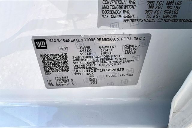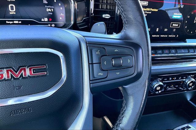 Cloth Rear Seat w/Storage Package, Elevation Black Package (LPO) (6" Rectangular Black Tubular Assist Steps (LPO), All-Weather Floor Liner (LPO), and Black GMC Emblems (LPO)), High Capacity Suspension Package, Preferred Equipment Group 3SB (120-Volt Bed Mounted Power Outlet, 120-Volt Instrument Panel Power Outlet, 2 Charge/Data USB Ports, 2 Type-C Charge-Only Rear USB Ports, 6-Speaker Audio System Feature, Auto-Locking Rear Differential, Body Color Header w/Gloss Black Mesh Grille Bars, Color-Keyed Carpeting Floor Covering, Compass, Deep-Tinted Glass, Electric Rear-Window Defogger, Electrical Steering Column Lock, Front Frame-Mounted Black Recovery Hooks, Front Rubberized-Vinyl Floor Mats, GMC Connected Access Capable, HD Rear Vision Camera, Heated Steering Wheel, Keyless Open & Start, LED Cargo Area Lighting, Manual Tilt-Wheel & Telescoping Steering Column, OnStar & GMC Connected Services Capable, Power Door Locks, Power Front Windows w/Driver Express Up/Down, Power Front Windows w/Passenger Express Down, Power Rear Windows w/Express Down, Push Button Start, Rear Rubberized-Vinyl Floor Mats, Remote Vehicle Starter System, SiriusXM w/360L, Steering Wheel Audio Controls, Theft Deterrent System (Unauthorized Entry), Wi-Fi Hotspot Capable, and Wireless Phone Projection), Trailering Package (Hitch Guidance), X31 Off-Road Package (Dual Exhaust System, Heavy-Duty Air Filter, Hill Descent Control, Off-Road Suspension, Rear Wheelhouse Liners, and X31 Hard Badge), 10-Speed Automatic, 4WD, Black Cloth, 10-Way Power Driver Seat Adjuster w/Lumbar, 2 Charge/Data USB Ports Inside Center Console, 220 Amp Alternator, 4-Way Manual Passenger Seat Adjuster, 4-Wheel Disc Brakes, 6 Speakers, ABS brakes, Air Conditioning, Alloy wheels, AM/FM radio: SiriusXM with 360L, Apple CarPlay/Android Auto, Auto High-beam Headlights, Automatic Emergency Braking, Automatic temperature control, Brake assist, Buckle to Drive, Bumpers: body-color, Cloth Seat Trim, Delay-off headlights, Driver door bin, Driver vanity mirror, Dual front impact airbags, Dual front side impact airbags, Electronic Precision Shift, Electronic Stability Control, Emergency communication system: OnStar and GMC Connected Services capable, Engine Block Heater, Exterior Parking Camera Rear, Floor-Mounted Center Console, Following Distance Indicator, Forward Collision Alert, Front 40/20/40 Split-Bench Seat, Front anti-roll bar, Front Bucket Seats, Front Center Armrest w/Storage, Front dual zone A/C, Front fog lights, Front License Plate Kit, Front Pedestrian Braking, Front reading lights, Front wheel independent suspension, Fully automatic headlights, Heated door mirrors, Heated Driver & Front Outboard Passenger Seating, Heated front seats, Heated steering wheel, Illuminated entry, IntelliBeam Automatic High Beam On/Off, Lane Keep Assist w/Lane Departure Warning, Low tire pressure warning, Navigation System, Not Equipped w/Heated Front Seats, Not Equipped w/Heated Steering Wheel (DISC), Occupant sensing airbag, Outside temperature display, Overhead airbag, Overhead console, Panic alarm, Passenger door bin, Passenger vanity mirror, Power door mirrors, Power driver seat, Power steering, Power windows, Premium audio system: GMC Infotainment System, Radio data system, Radio: Premium GMC Infotainment Audio System, Rear reading lights, Rear seat center armrest, Rear step bumper, Rear window defroster, Remote keyless entry, Security system, Speed control, Speed-sensing steering, Split folding rear seat, Steering wheel mounted audio controls, Tachometer, Telescoping steering wheel, Tilt steering wheel, Traction control, Trip computer, Variably intermittent wipers, Voltmeter, Wheels: 20" x 9" High Gloss Black Painted Aluminum, and Wireless Charging. 22/26 City/Highway MPG