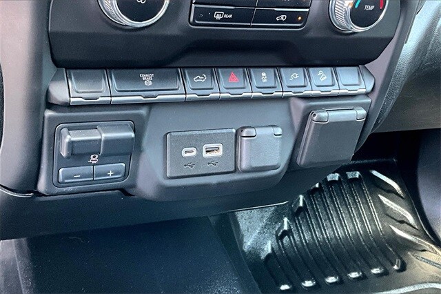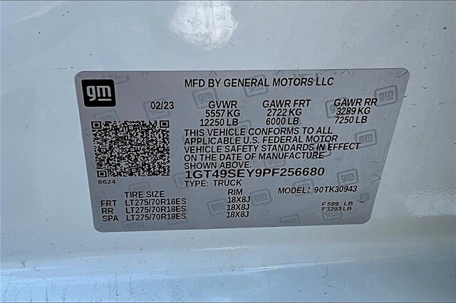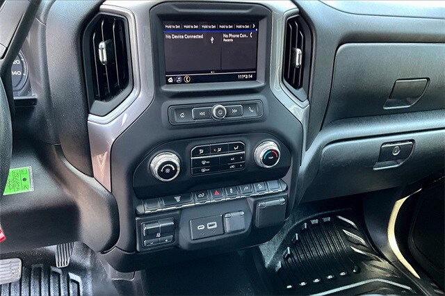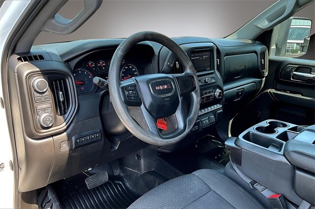 Convenience Package (Deep-Tinted Glass, Electric Rear-Window Defogger, EZ Lift Power Lock & Release Tailgate, LED Cargo Area Lighting, Remote Keyless Entry, and Steering Wheel-Mounted Cruise Control), Preferred Equipment Group 1SA (2-Speed Electronic Shift Transfer Case, Chrome Surround Grille w/Black Mesh, Power Rear Windows w/Express Down, and Solar Absorbing Tinted Glass), Snow Plow Prep/Camper Package (220 Amp Alternator), Suspension Package, 10-Speed Automatic, 4WD, Black Cloth, 120-Volt Bed Mounted Power Outlet, 120-Volt Instrument Panel Power Outlet, 4-Way Manual Driver Seat Adjuster, 4-Way Manual Passenger Seat Adjuster, 4-Wheel Disc Brakes, 6 Speakers, 6-Speaker Audio System Feature, ABS brakes, Air Conditioning, AM/FM radio, Apple CarPlay/Android Auto, Auto-Dimming Inside Rear-View Mirror, Brake assist, Bumpers: chrome, Delay-off headlights, Driver door bin, Dual front impact airbags, Dual front side impact airbags, Electronic Stability Control, Engine Block Heater, Exhaust Brake, Front 40/20/40 Split-Bench Seats, Front anti-roll bar, Front Center Armrest w/Storage, Front License Plate Kit, Front reading lights, Front wheel independent suspension, Fully automatic headlights, Heavy-Duty 80 Amp Battery, Integrated Trailer Brake Controller, Low tire pressure warning, Occupant sensing airbag, Outside temperature display, Overhead airbag, Overhead console, Passenger door bin, Passenger vanity mirror, Perimeter Lighting, Pickup Bed, Power steering, Power windows, Power-Adjustable Vertical Trailering Mirrors, Premium audio system: GMC Infotainment System, Radio: AM/FM w/GMC Infotainment System, Rear reading lights, Rear step bumper, Split folding rear seat, Tachometer, Tilt steering wheel, Traction control, Trip computer, Upfitter Switch Kit (5), Variably intermittent wipers, Vinyl Seat Trim, Voltmeter, and Winter Grille Cover.
