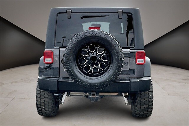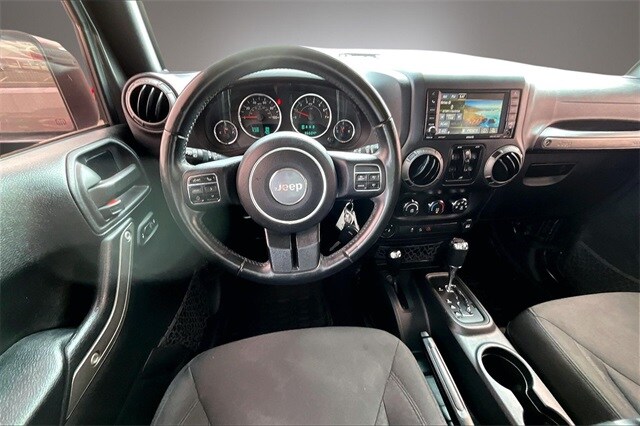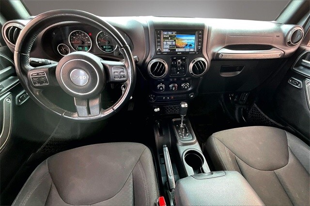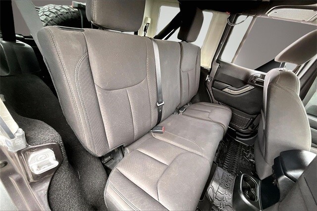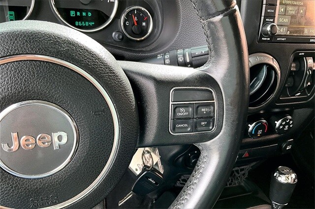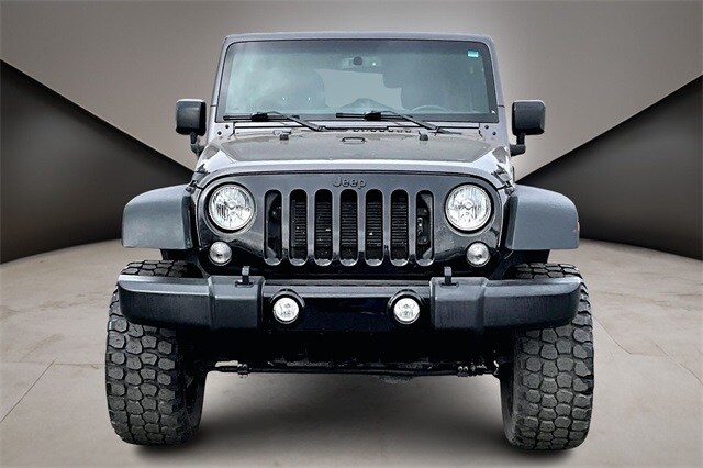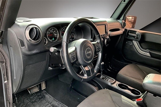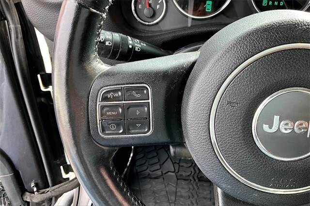 Connectivity Group (Remote USB Port, Tire Pressure Monitoring Display, Uconnect Voice Command w/Bluetooth, and Vehicle Information Center), Quick Order Package 24W Willys Wheeler (1-Yr SiriusXM Radio Service, 4-Wheel Drive Swing Gate Decal, Anti-Spin Differential Rear Axle, Auto-Dimming Mirror w/Reading Lamp, Black Jeep Grille Badge, Deep Tint Sunscreen Windows, Front 1-Touch Down Power Windows, Jeep Trail Rated Kit, Low Gloss Black Wrangler Decal, MOPAR Slush Mats, Performance Suspension, Power Convenience Group, Power Heated Mirrors, Power Locks, Rear Passenger Assist Handles Kit, Remote Keyless Entry, Security Alarm, SIRIUS Satellite Radio, Wheels: 17" x 7.5" High Gloss Black Willys, Willys Hood Decal, and Willys Wheeler Grille), Trailer Tow Group (Class II Receiver Hitch and Trailer Tow w/4-Pin Connector Wiring), Willys Wheeler Package, 16" x 7.0" Luxury Styled Steel Wheels, 4-Wheel Disc Brakes, 8 Speakers, ABS brakes, Air Conditioning, AM/FM radio, Audio Jack Input for Mobile Devices, Black 3-Piece Hard Top, Brake assist, CD player, Cloth Seats w/Adjustable Head Restraints, Compass, Delete Sunrider Soft Top, Driver door bin, Driver vanity mirror, Dual front impact airbags, Electronic Stability Control, Freedom Panel Storage Bag, Front anti-roll bar, Front Bucket Seats, Front Center Armrest w/Storage, Front fog lights, Integrated roll-over protection, Low tire pressure warning, Manufacturer's Statement of Origin, Normal Duty Suspension, Occupant sensing airbag, Outside temperature display, Passenger door bin, Passenger vanity mirror, Power steering, Radio: 130, Radio: 430, Rear anti-roll bar, Rear Window Defroster, Rear Window Wiper/Washer, Speed control, Split folding rear seat, Steering wheel mounted audio controls, Sunrider Soft Top, Tachometer, Tilt steering wheel, Tinted Rear Quarter & Liftgate Windows, Traction control, Trip computer, and Variably intermittent wipers. Recent Arrival! Odometer is 25862 miles below market average!