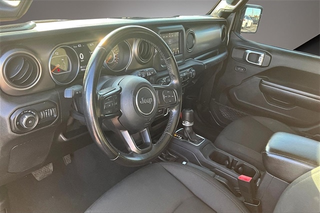 Quick Order Package 22S Sport S (Automatic Headlamps, Deep Tint Sunscreen Windows, Front 1-Touch Down Power Windows, Leather Wrapped Steering Wheel, Power Heated Mirrors, Remote Keyless Entry, Security Alarm, Speed Sensitive Power Locks, Sport S, Sun Visors w/Illuminated Vanity Mirrors, and Wheels: 17" x 7.5" Tech Silver Aluminum), Technology Group (7.0" Touchscreen Display, Air Conditioning w/Auto Temperature Control, Air Filtering, Apple CarPlay, Cluster 7.0" TFT Color Display, For More Info, Call 800-643-2112, Google Android Auto, GPS Antenna Input, Integrated Center Stack Radio, Radio: Uconnect 4 w/7" Display, SiriusXM Radio Service, SiriusXM Satellite Radio, and USB Host Flip), 3.45 Rear Axle Ratio, 4-Wheel Disc Brakes, 8 Speakers, ABS brakes, Air Conditioning, AM/FM radio, Aux Battery, Black 3-Piece Hard Top, Brake assist, Cloth Low-Back Bucket Seats, Compass, Delay-off headlights, Driver door bin, Driver vanity mirror, Dual front impact airbags, Dual front side impact airbags, Electronic Stability Control, Freedom Panel Storage Bag, Front anti-roll bar, Front Bucket Seats, Front Center Armrest w/Storage, Front fog lights, Front reading lights, Integrated roll-over protection, Low tire pressure warning, Manufacturer's Statement of Origin, No Soft Top, Non-Lock Fuel Cap w/o Discriminator, Normal Duty Suspension, Occupant sensing airbag, Outside temperature display, ParkView Rear Back-Up Camera, Passenger door bin, Passenger vanity mirror, Power steering, Radio data system, Radio: Uconnect 3 w/5" Display, Rear anti-roll bar, Rear reading lights, Rear Window Defroster, Rear Window Wiper/Washer, Speed control, Split folding rear seat, Steering wheel mounted audio controls, Stop-Start Dual Battery System, Tachometer, Telescoping steering wheel, Tilt steering wheel, Traction control, Trip computer, Variably intermittent wipers, and Wheels: 17" x 7.5" Black Steel Styled.
