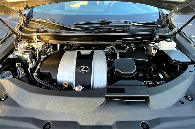 AWD, Rioja Red w/F SPORT Leather, 2.277 Axle Ratio, 4-Wheel Disc Brakes, 9 Speakers, ABS brakes, Air Conditioning, Alloy wheels, AM/FM radio: SiriusXM, AM/FM/CD Radio, Anti-whiplash front head restraints, Auto High-beam Headlights, Auto-dimming Rear-View mirror, Automatic temperature control, Bumpers: body-color, CD player, Compass, Delay-off headlights, Distance pacing cruise control: All-Speed Dynamic Radar Cruise Control, Driver door bin, Driver vanity mirror, Dual front impact airbags, Dual front side impact airbags, Electronic Stability Control, Emergency communication system: Lexus Enform w/Safety Connect, Exterior Parking Camera Rear, Four wheel independent suspension, Front anti-roll bar, Front Bucket Seats, Front Center Armrest, Front dual zone A/C, Front fog lights, Front reading lights, Fully automatic headlights, Garage door transmitter: HomeLink, Genuine wood console insert, Genuine wood door panel insert, Heated door mirrors, Illuminated entry, Knee airbag, Leather Shift Knob, Leather steering wheel, Low tire pressure warning, NuLuxe Seat Trim, Occupant sensing airbag, Outside temperature display, Overhead airbag, Overhead console, Panic alarm, Passenger door bin, Passenger vanity mirror, Power door mirrors, Power driver seat, Power Liftgate, Power passenger seat, Power steering, Power windows, Radio data system, Rain sensing wipers, Rear anti-roll bar, Rear reading lights, Rear seat center armrest, Rear side impact airbag, Rear window defroster, Rear window wiper, Remote keyless entry, Security system, Speed control, Speed-sensing steering, Split folding rear seat, Spoiler, Steering wheel mounted audio controls, Tachometer, Telescoping steering wheel, Tilt steering wheel, Traction control, Trip computer, Turn signal indicator mirrors, Variably intermittent wipers, and Wheels: 18" x 8" 7-Spoke Aluminum. 19/26 City/Highway MPG