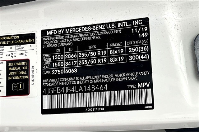 4-Way Lumbar Support, 4-Wheel Disc Brakes, 8 Speakers, ABS brakes, Aerial for GPS, Air Conditioning, Alloy wheels, AM/FM radio, Android Auto®, Anti-whiplash front head restraints, Apple CarPlay®, Apple CarPlay®/Android Auto®, Auto tilt-away steering wheel, Auto-dimming door mirrors, Auto-dimming Rear-View mirror, Automatic temperature control, Axle Ratio: 3.69, Brake assist, Bumpers: body-color, Compass, Delay-off headlights, Driver door bin, Driver vanity mirror, Dual front impact airbags, Dual front side impact airbags, DVD-Audio, eCall Emergency System, Electronic Stability Control, Emergency communication system: eCall Emergency System, Exterior Parking Camera Rear, Four wheel independent suspension, Front anti-roll bar, Front Bucket Seats, Front Center Armrest, Front dual zone A/C, Front reading lights, Fully automatic headlights, Garage door transmitter: Homelink, Genuine wood console insert, Genuine wood dashboard insert, Genuine wood door panel insert, HD Radio, Heated door mirrors, Heated Front Bucket Seats, Heated front seats, Heated Power Front Seats w/Driver Memory, Illuminated entry, Knee airbag, Leather steering wheel, Live Traffic, Low tire pressure warning, MB Navigation, MB-Tex Leatherette Seat Trim, MBUX Voice Control, Memory seat, Navigation Services, Navigation system: MBUX, Navigation Updates for 3 Years, Occupant sensing airbag, Outside temperature display, Overhead airbag, Panic alarm, Passenger door bin, Passenger vanity mirror, Power adjustable front head restraints, Power door mirrors, Power driver seat, Power Liftgate, Power moonroof, Power passenger seat, Power steering, Power windows, Premium audio system: MBUX, Radio data system, Radio: MBUX Multimedia System, Rain sensing wipers, Rear anti-roll bar, Rear fog lights, Rear reading lights, Rear seat center armrest, Rear window defroster, Rear window wiper, Remote keyless entry, Roof rack: rails only, Security system, Smartphone Integration, Speed control, Speed-sensing steering, Speed-Sensitive Wipers, Split folding rear seat, Spoiler, Steering wheel memory, Steering wheel mounted audio controls, Tachometer, Telescoping steering wheel, Tilt steering wheel, Traction control, Trip computer, Turn signal indicator mirrors, Weather band radio, Wheels: 19" Twin 5-Spoke, and Wide Screen Media Display. 19/26 City/Highway MPG
