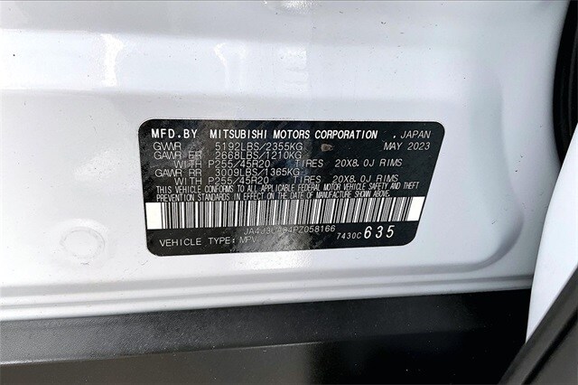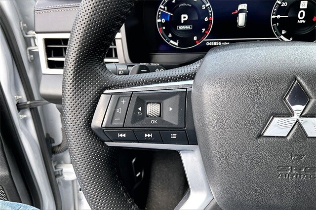 3rd row seats: split-bench, 4-Wheel Disc Brakes, 5.694 Axle Ratio, 6 Speakers, ABS brakes, Air Conditioning, Alloy wheels, AM/FM radio: SiriusXM, Android Auto & Apple CarPlay, Auto High-beam Headlights, Automatic temperature control, Brake assist, Bumpers: body-color, Driver door bin, Driver vanity mirror, Dual front impact airbags, Dual front side impact airbags, Electronic Stability Control, Emergency communication system: Mitsubishi Connect w/ 24-month trial, Exterior Parking Camera Rear, Four wheel independent suspension, Front anti-roll bar, Front Bucket Seats, Front Center Armrest w/Storage, Front dual zone A/C, Front fog lights, Front reading lights, Fully automatic headlights, Heated door mirrors, Heated Front Bucket Seats, Heated front seats, Illuminated entry, Knee airbag, Leather Shift Knob, Leather steering wheel, Low tire pressure warning, Navigation System, Occupant sensing airbag, Outside temperature display, Overhead airbag, Overhead console, Panic alarm, Passenger door bin, Passenger vanity mirror, Power door mirrors, Power driver seat, Power Liftgate, Power steering, Power windows, Radio data system, Radio: AM/FM 9.0" Navigation w/Smartphone Link, Rain sensing wipers, Rear anti-roll bar, Rear seat center armrest, Rear side impact airbag, Rear window defroster, Rear window wiper, Reclining 3rd row seat, Remote keyless entry, Security system, Speed control, Speed-Sensitive Wipers, Split folding rear seat, Spoiler, Steering wheel mounted audio controls, Synthetic Leather Seat Trim, Tachometer, Telescoping steering wheel, Tilt steering wheel, Traction control, Trip computer, Turn signal indicator mirrors, and Variably intermittent wipers. Recent Arrival! Odometer is 1781 miles below market average! 24/31 City/Highway MPG