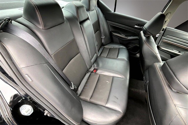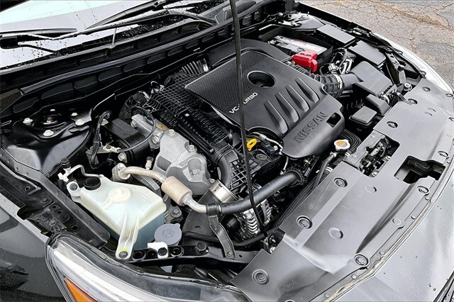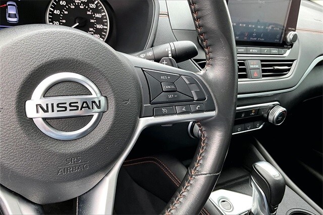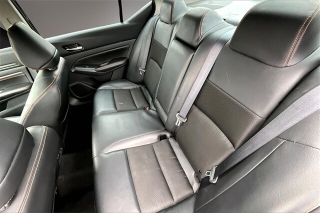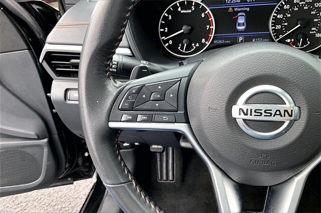 CVT with Xtronic, 4-Wheel Disc Brakes, 6 Speakers, ABS brakes, Air Conditioning, Alloy wheels, AM/FM radio: SiriusXM, Auto High-beam Headlights, Blind Spot Warning, Body-Colored Splash Guards, Brake assist, Bumpers: body-color, Chrome Bumper Protector, Delay-off headlights, Driver door bin, Driver vanity mirror, Dual front impact airbags, Dual front side impact airbags, Electronic Stability Control, Four wheel independent suspension, Front anti-roll bar, Front Bucket Seats, Front Center Armrest, Front reading lights, Fully automatic headlights, Heated door mirrors, Heated Front Bucket Seats, Heated front seats, Illuminated entry, Knee airbag, Leather Shift Knob, Low tire pressure warning, NissanConnect featuring Apple CarPlay and Android Auto, Occupant sensing airbag, Outside temperature display, Overhead airbag, Overhead console, Panic alarm, Passenger door bin, Passenger vanity mirror, Power door mirrors, Power driver seat, Power moonroof, Power steering, Power windows, Radio data system, Radio: AM/FM Audio System, Rear anti-roll bar, Rear Parking Sensors, Rear reading lights, Rear seat center armrest, Rear side impact airbag, Rear window defroster, Remote keyless entry, Security system, Speed control, Speed-sensing steering, Speed-Sensitive Wipers, Split folding rear seat, Sport Seat Trim, Sport steering wheel, SR Floor Mats/Trunk Mat/Hideaway Nets, Steering wheel mounted audio controls, Tachometer, Telescoping steering wheel, Tilt steering wheel, Traction control, Trip computer, Trunk Organizer Tray, Turn signal indicator mirrors, Variably intermittent wipers, and Wheels: 19" Machined Alloy. 25/34 City/Highway MPG